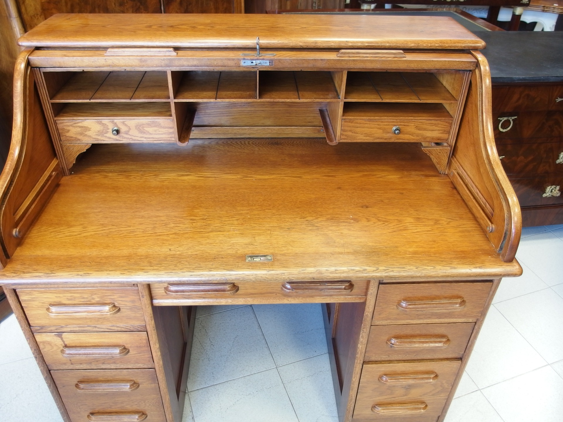 The desk is in perfect condition and does not require restoration. French polish with wax finish, perfect in all its parts (SEE PHOTOS). The closure slides perfectly and the drawer locking mechanism works perfectly.