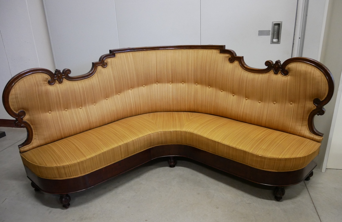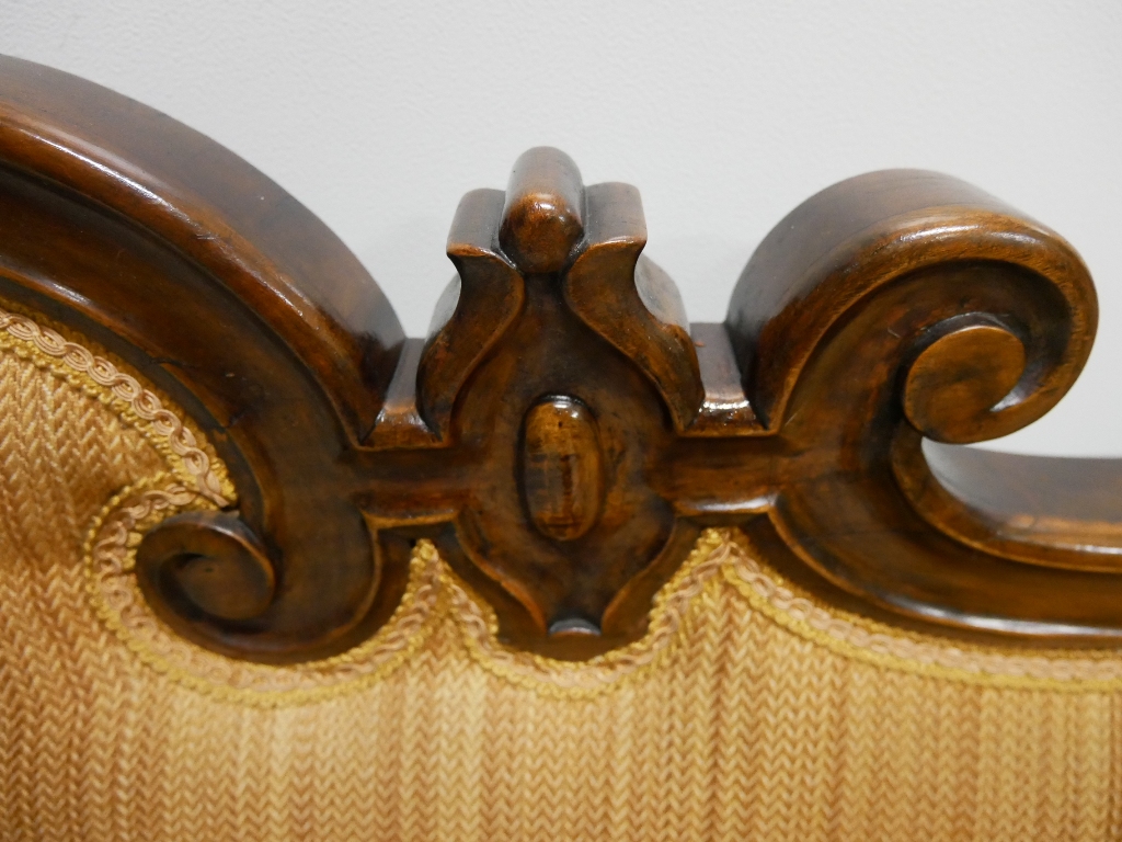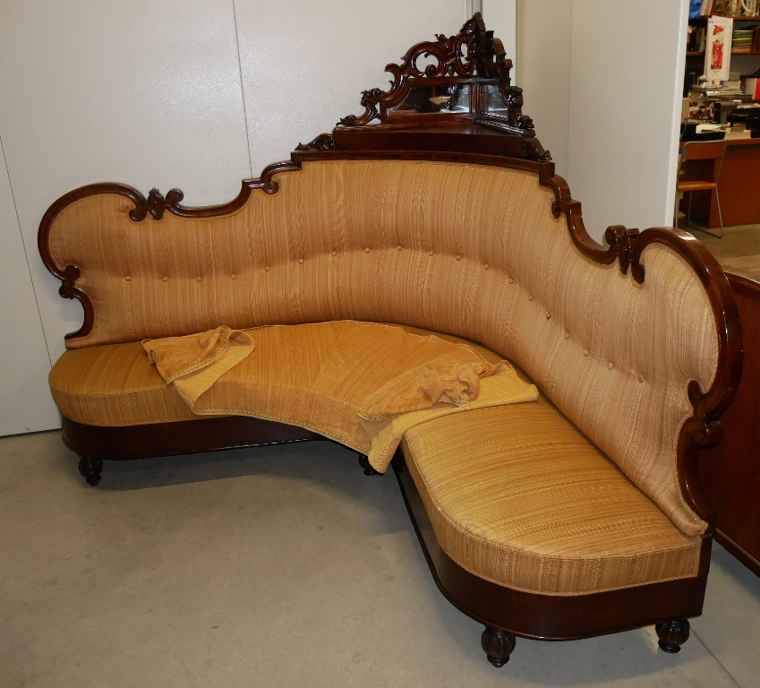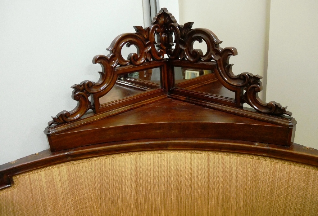Beautiful shaped backrest, with a shelf in the corner and carved frieze behind it.