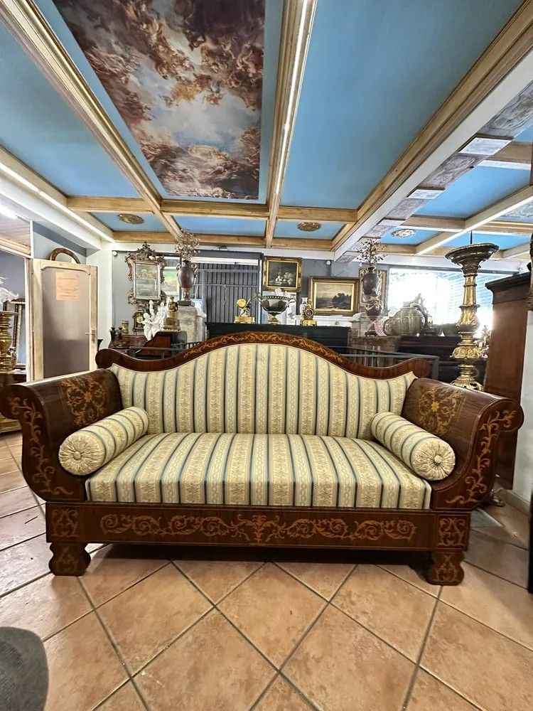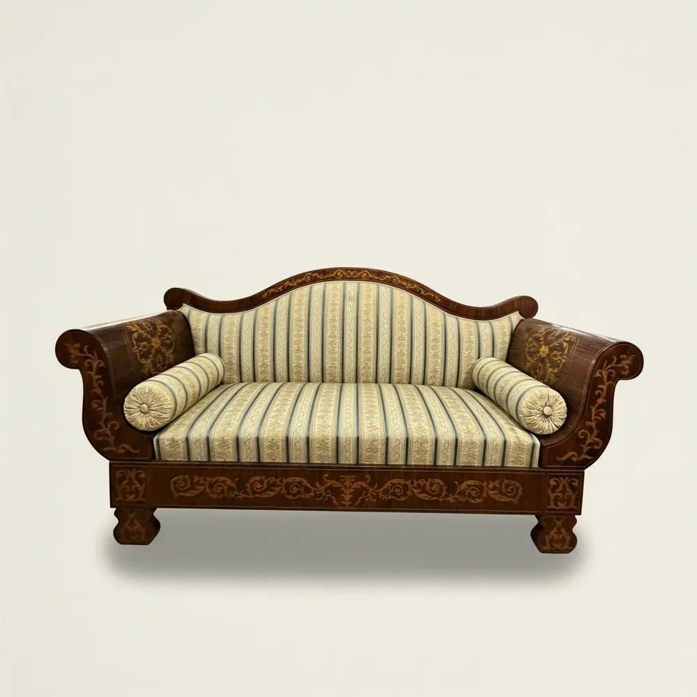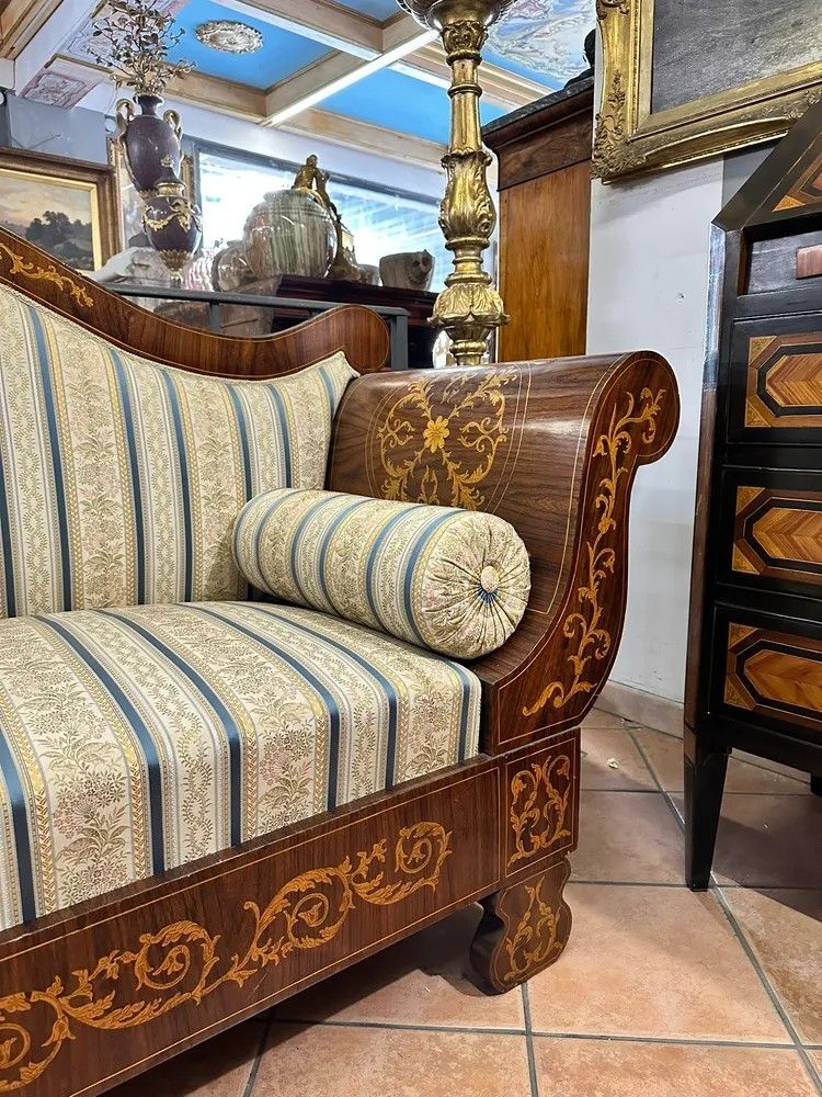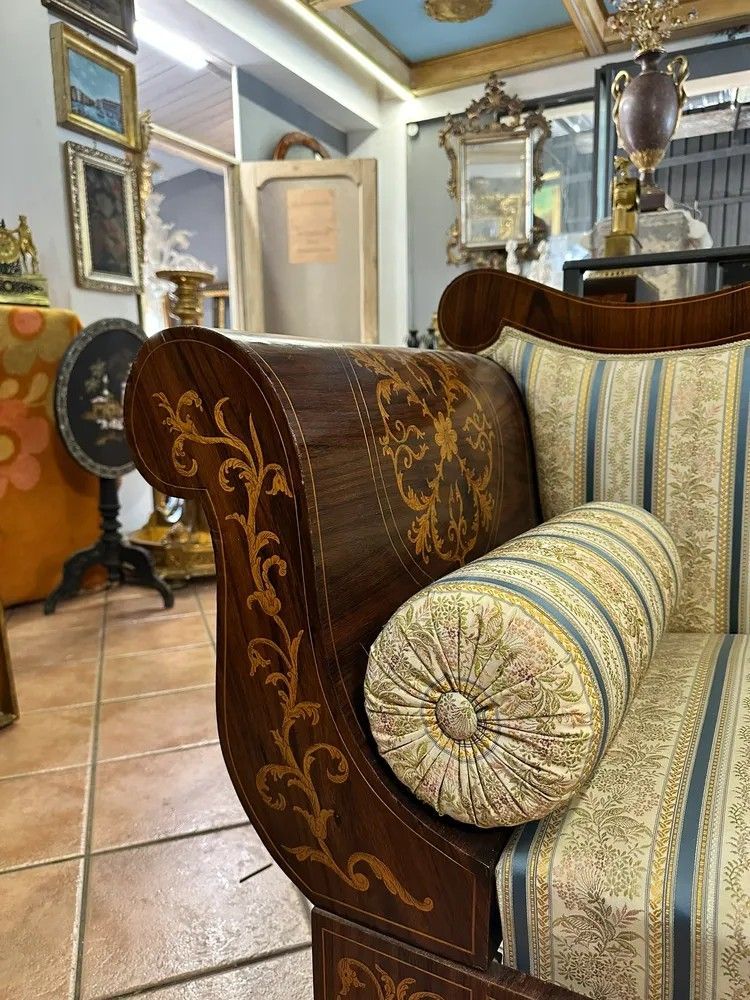 Divano a Barca Carlo X in Legno Intarsiato – XIX Sec.