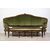 Il divano, molto garbato nel suo insieme, risulta particolarmente decorativo e la forma avvolgente, così come le leggiadre gambe, rendono otticamente molto discreto il suo ingombro. Inoltre è particolarmente adatto ad essere accostato ad arredi contemporanei oltre che antichi. Utilizzabile anche come divano da centro.