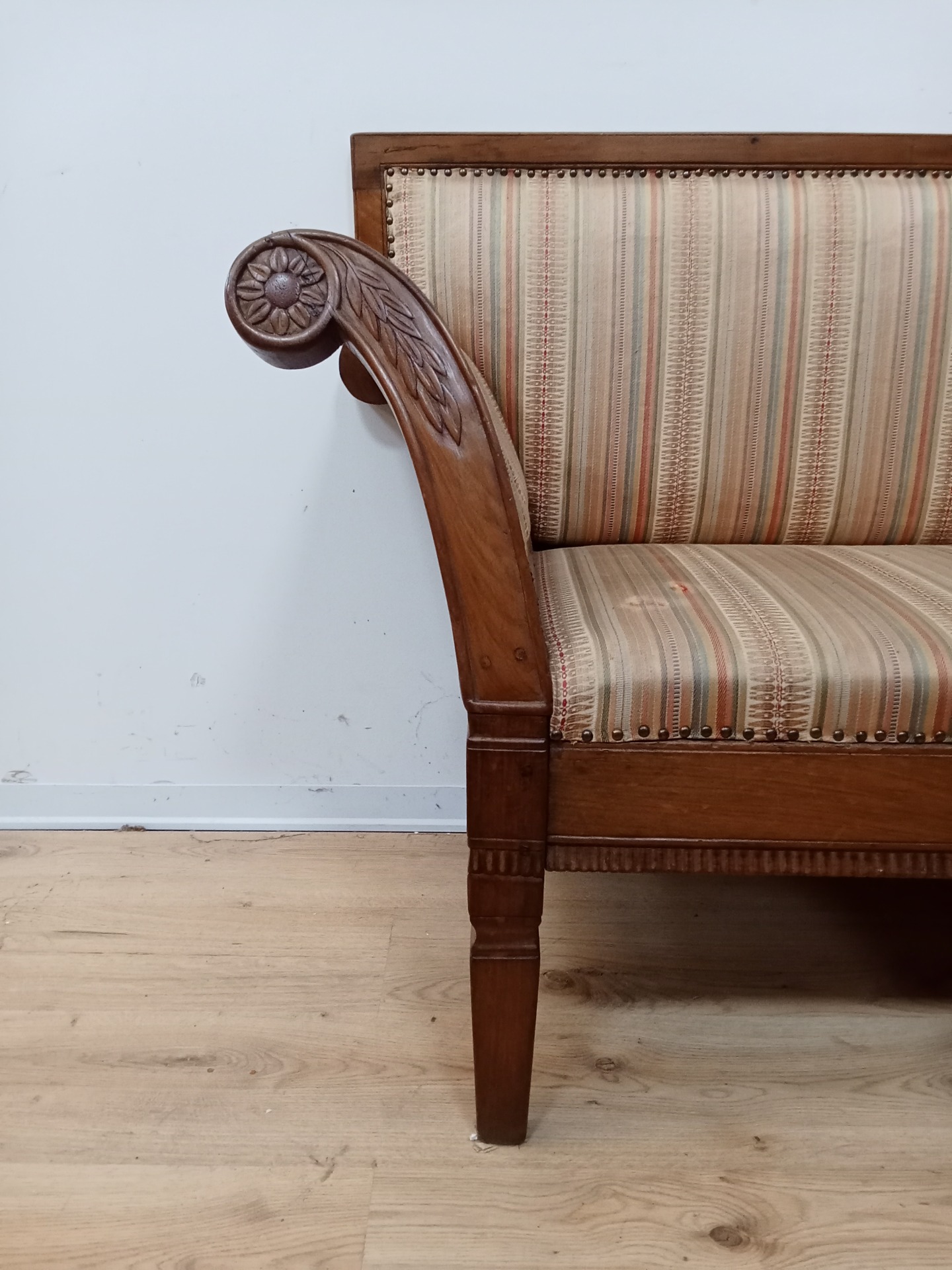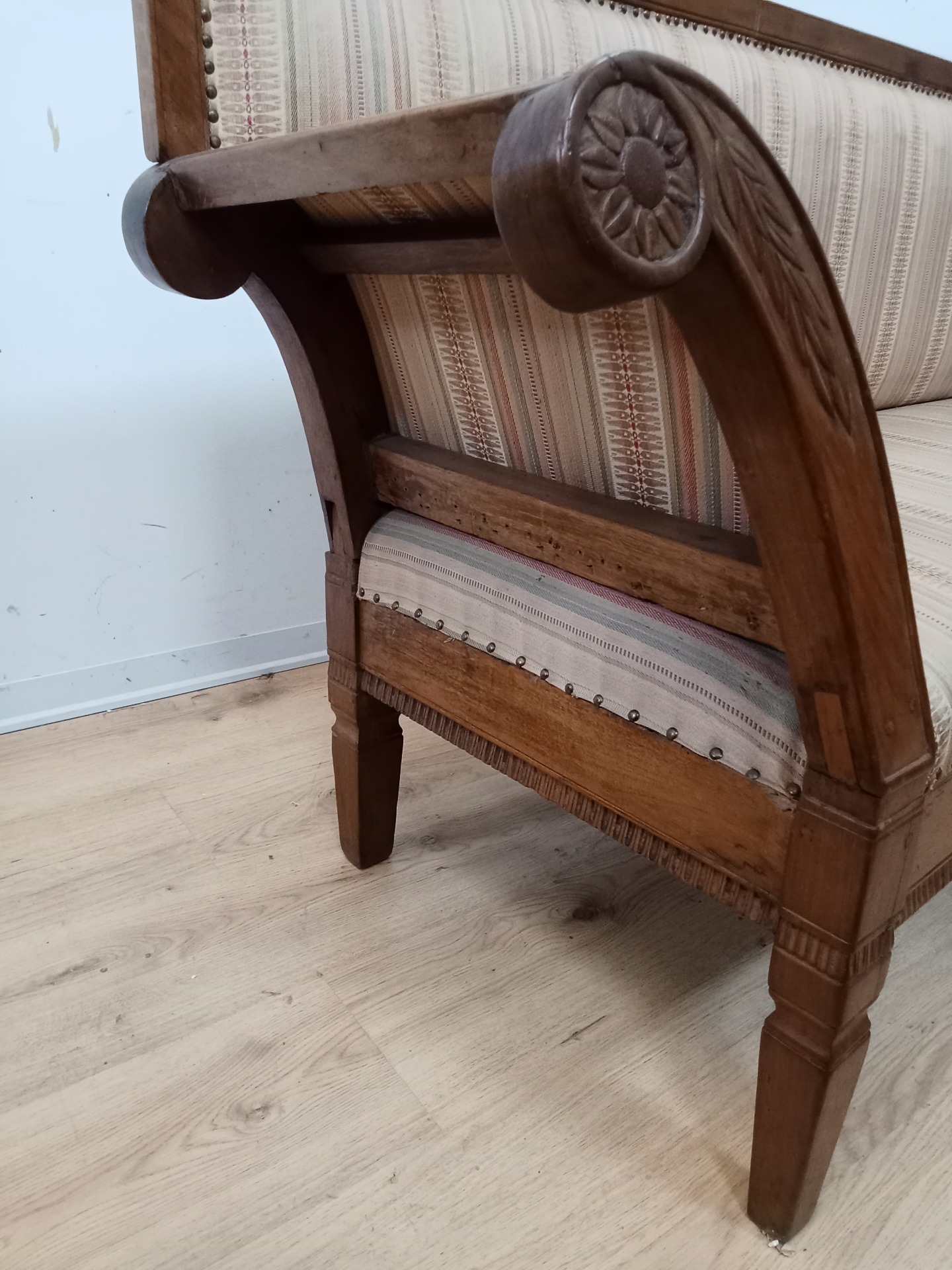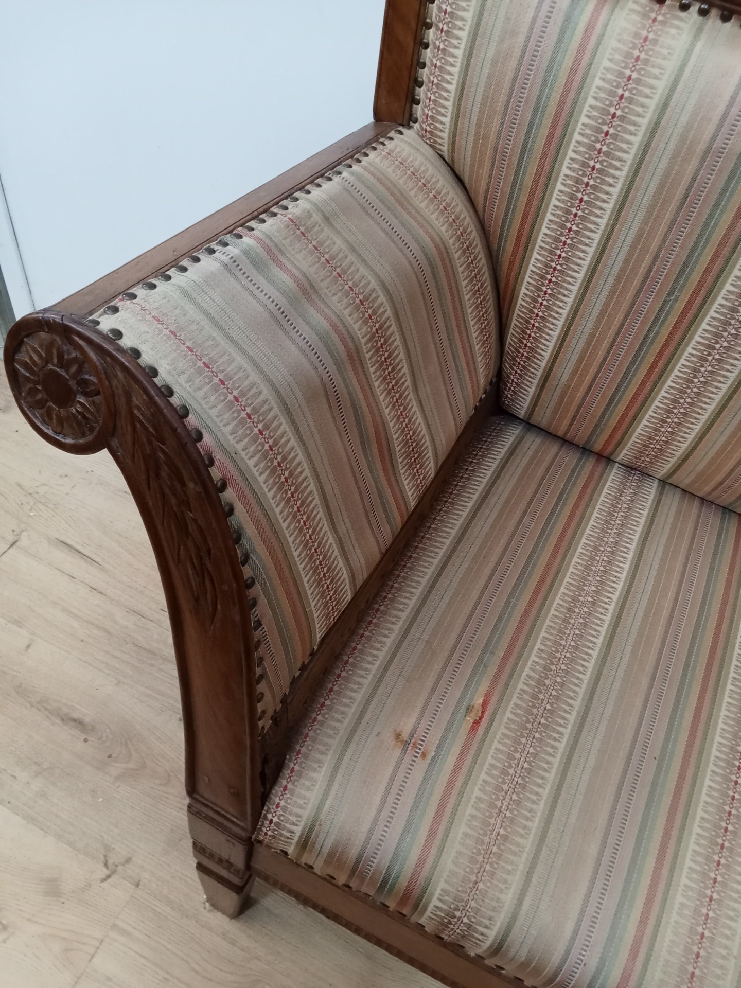 Louis XVI sofa with scroll arms - walnut - 18th century / 1700s - bench -