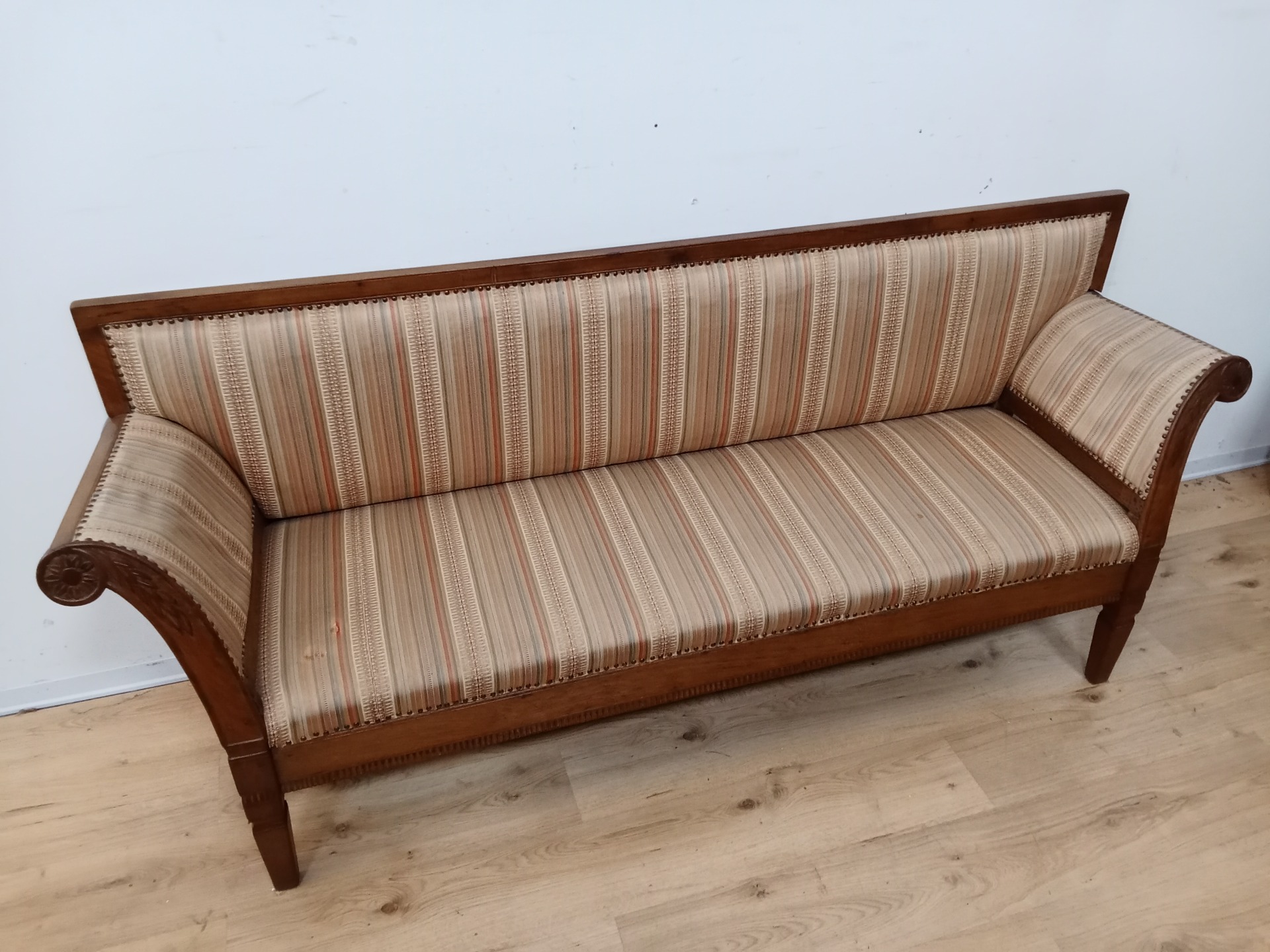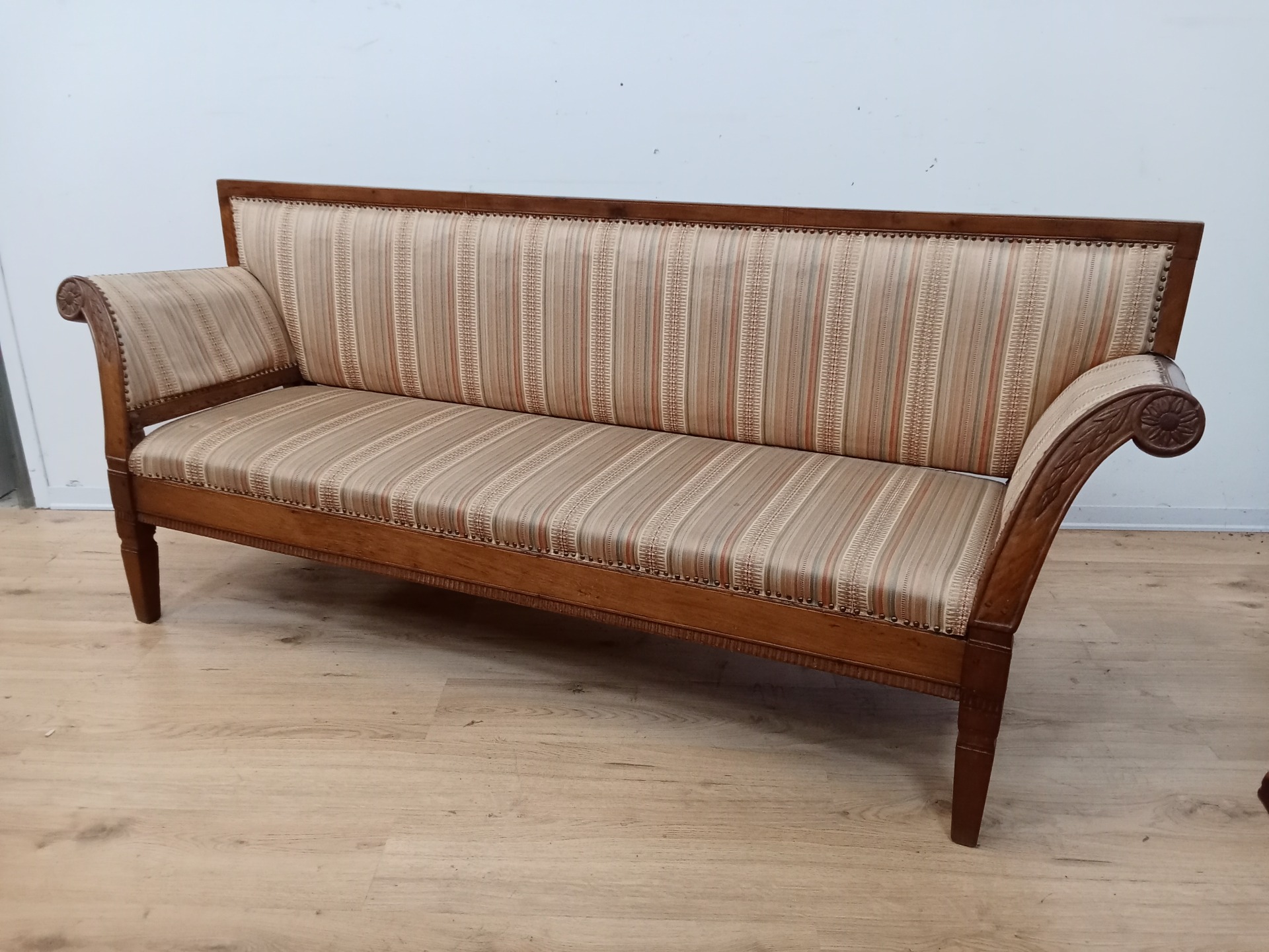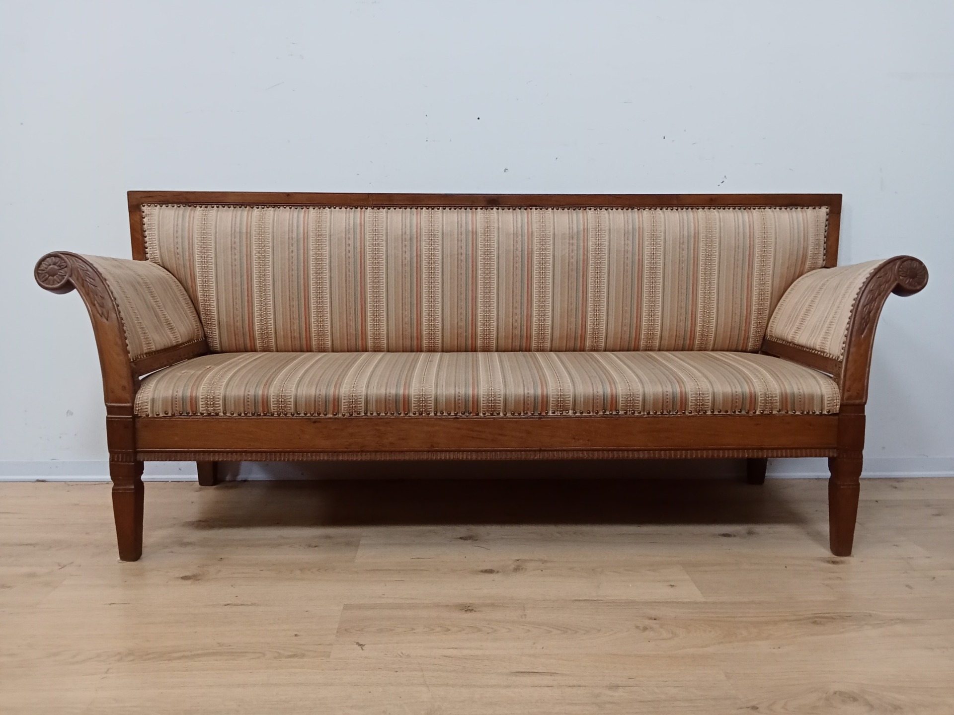 Louis XVI sofa with scroll arms - walnut - 18th century / 1700s - bench -