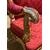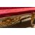 Schienale, seduta e braccioli imbottiti e rivestiti di tessuto rosso damascato.