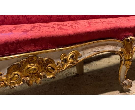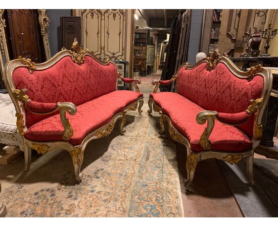PANC162 - Coppia di divani laccati e dorati con decori a ricciolo.