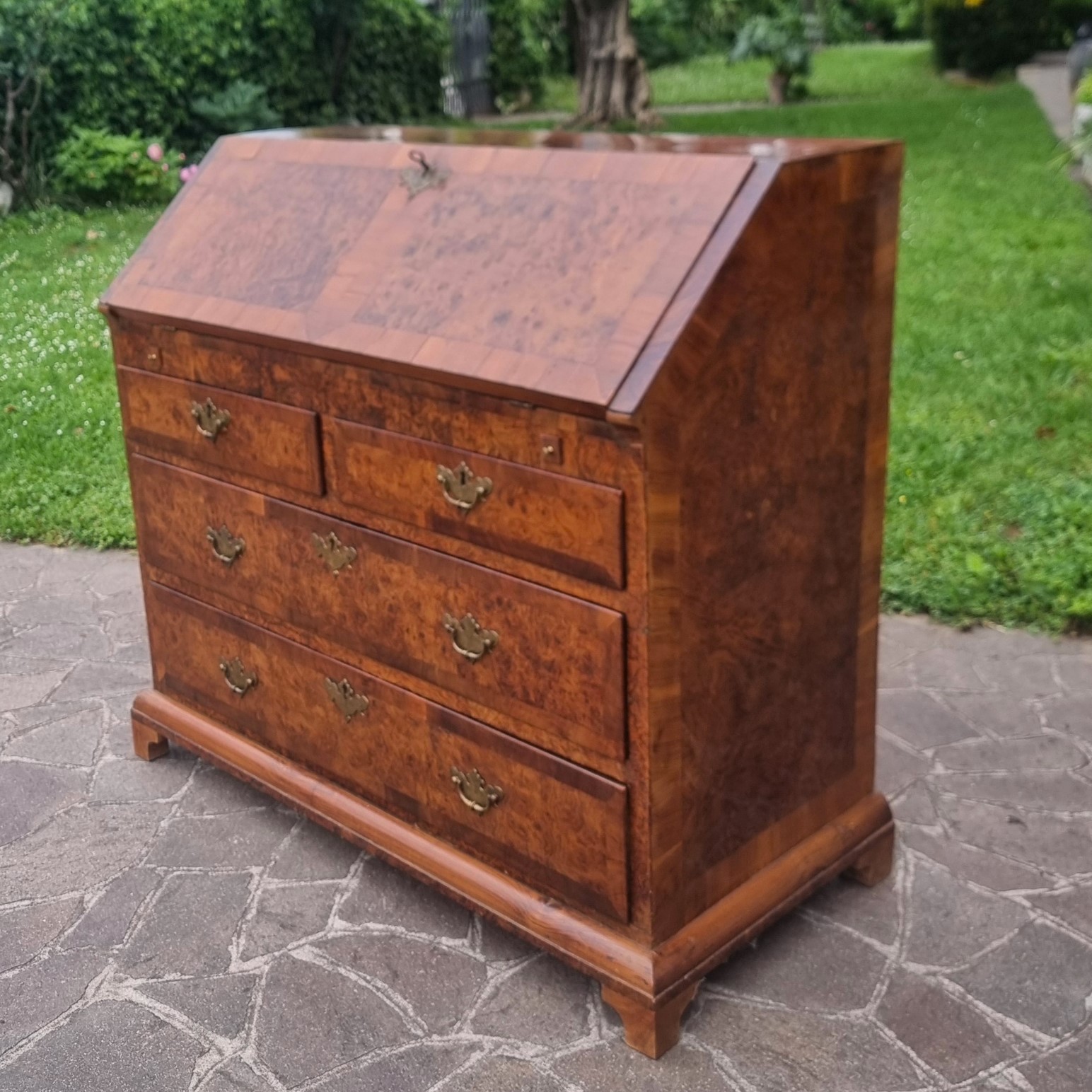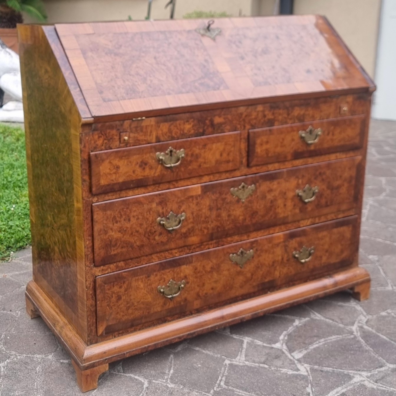 18th century English walnut and elm burl fall front desk – A masterpiece of style and functionality