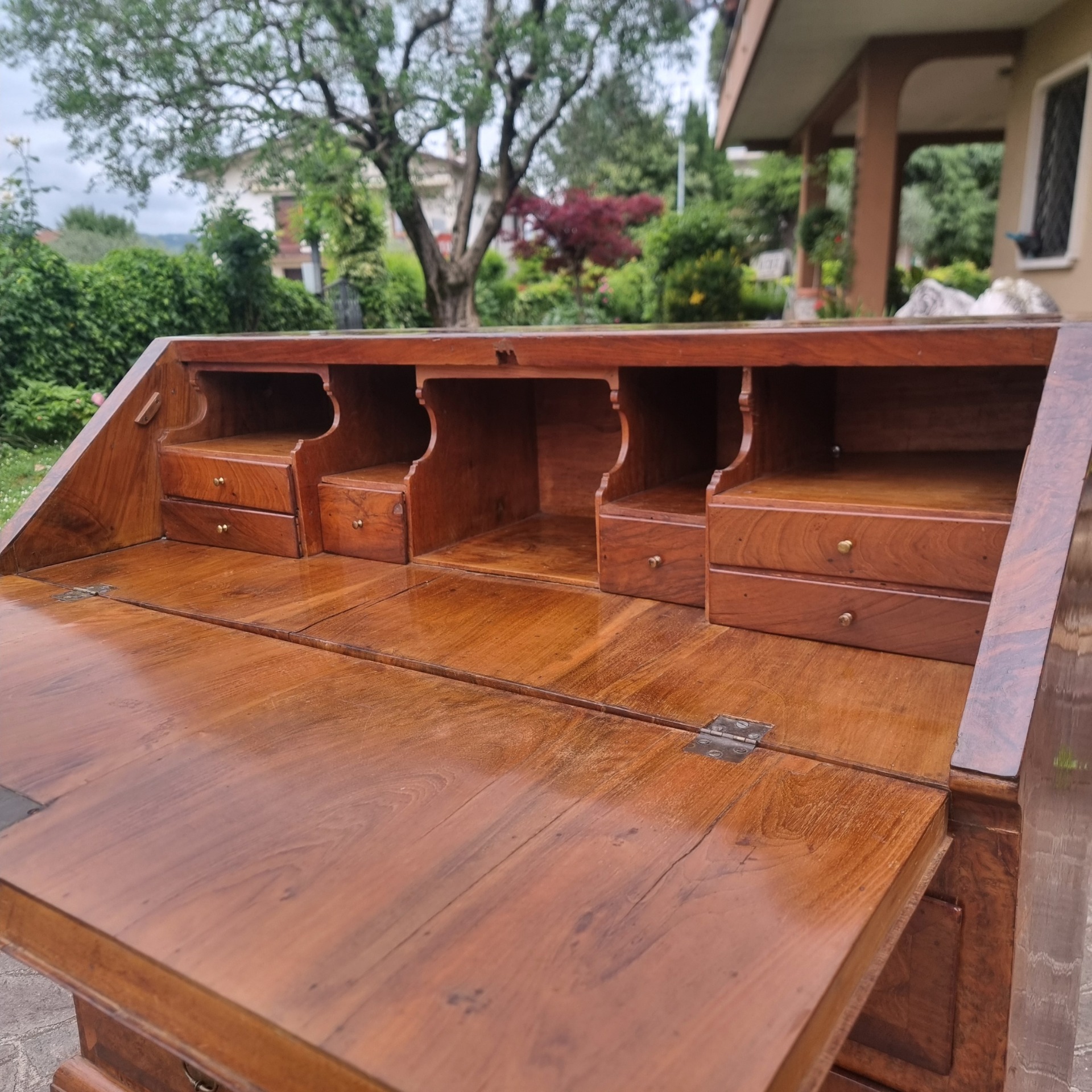 Buying an 18th century walnut and elm burl fall front desk means choosing an object with historical, functional and decorative value. Furthermore, it represents an investment in authenticity, which never loses its charm. Its discreet but elegant presence immediately adds a sophisticated touch to the environment.