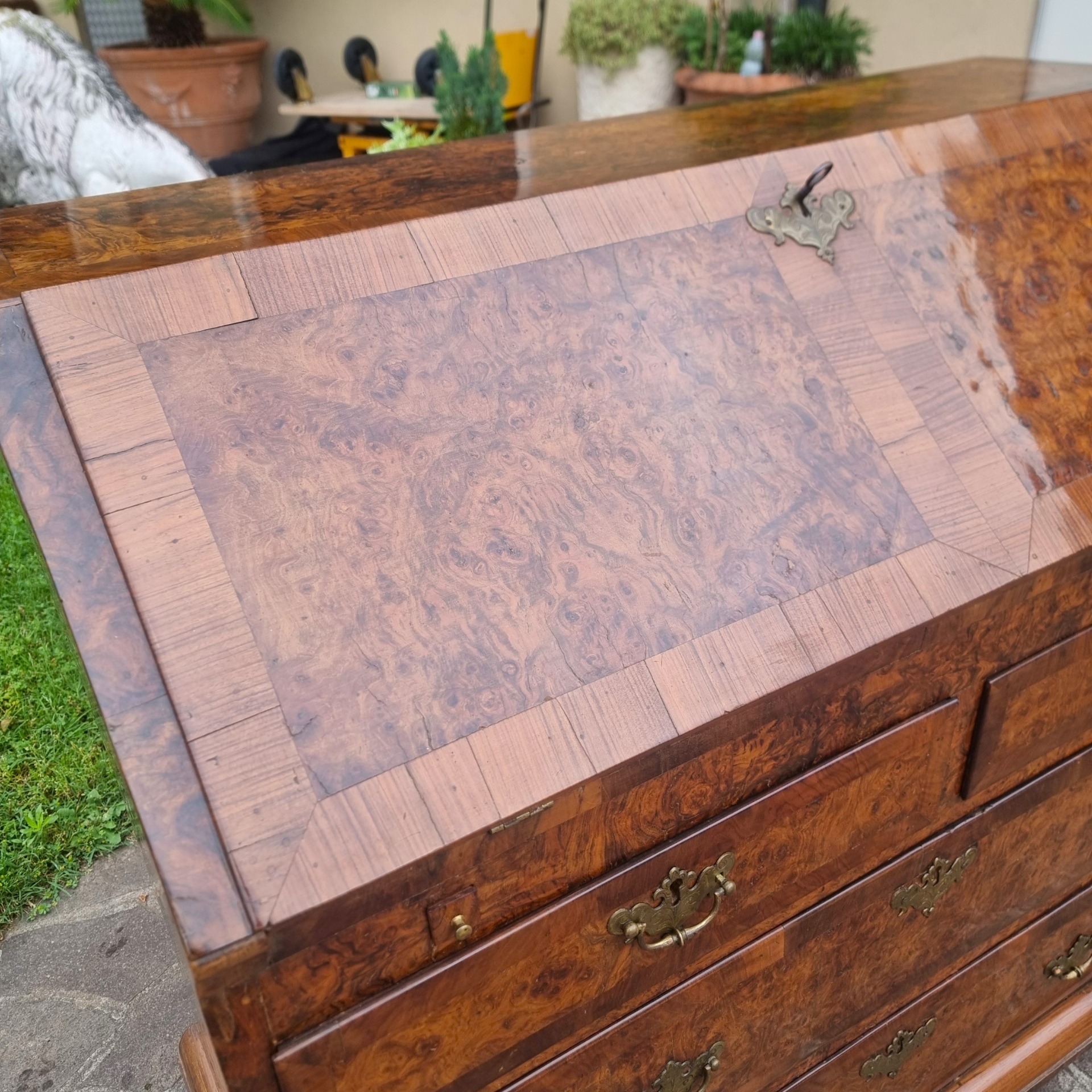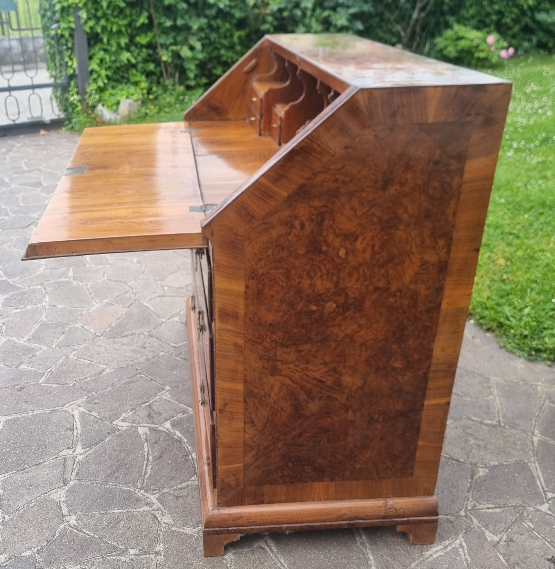 18th century English walnut and elm burl fall front desk – A masterpiece of style and functionality