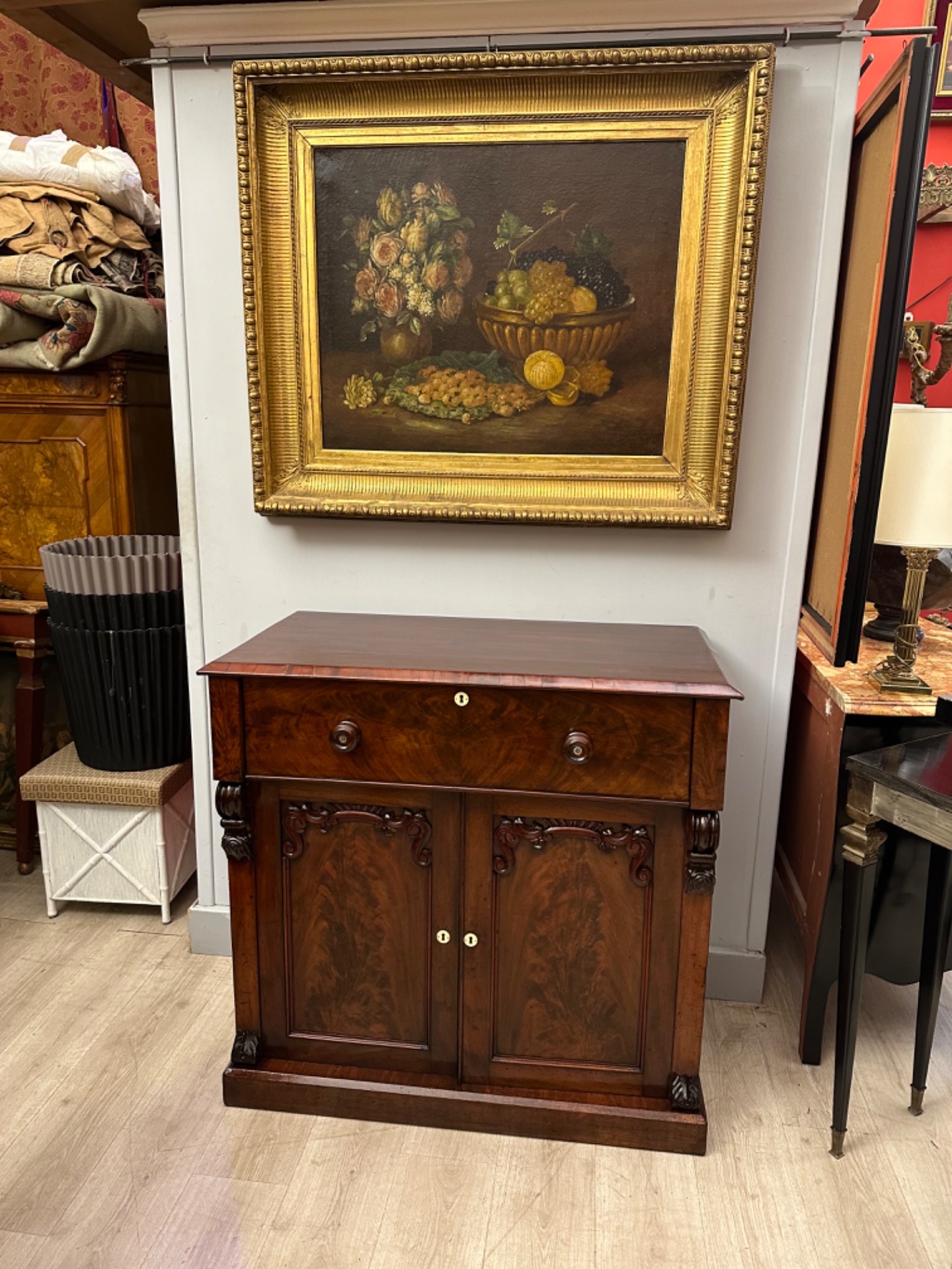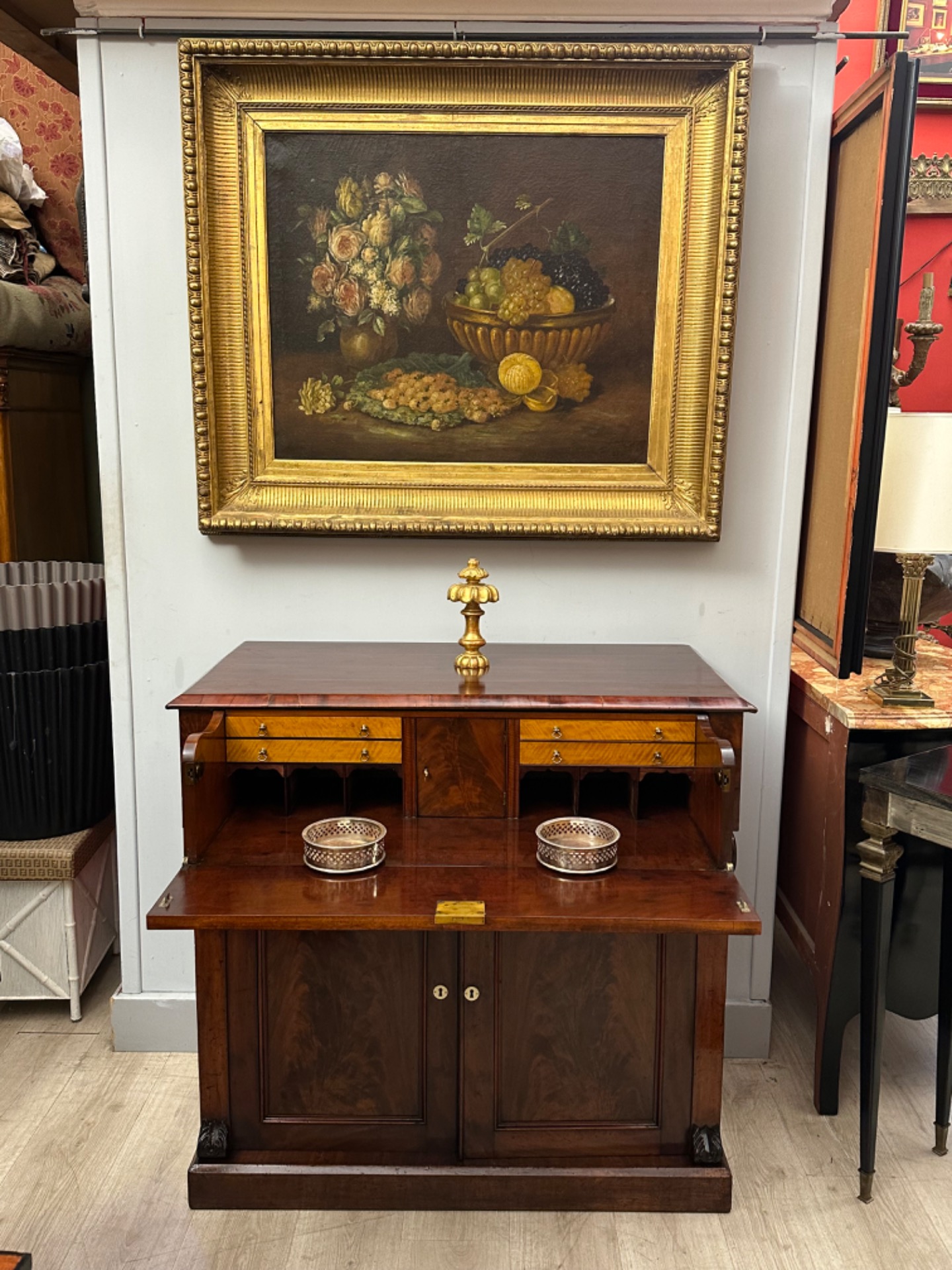 French servant from the second half of the 19th century, made of mahogany and maple, with a fold-down drawer with drawers and an internal door in excellent condition. Dimensions: 100cm x 55cm depth, 105cm height.
