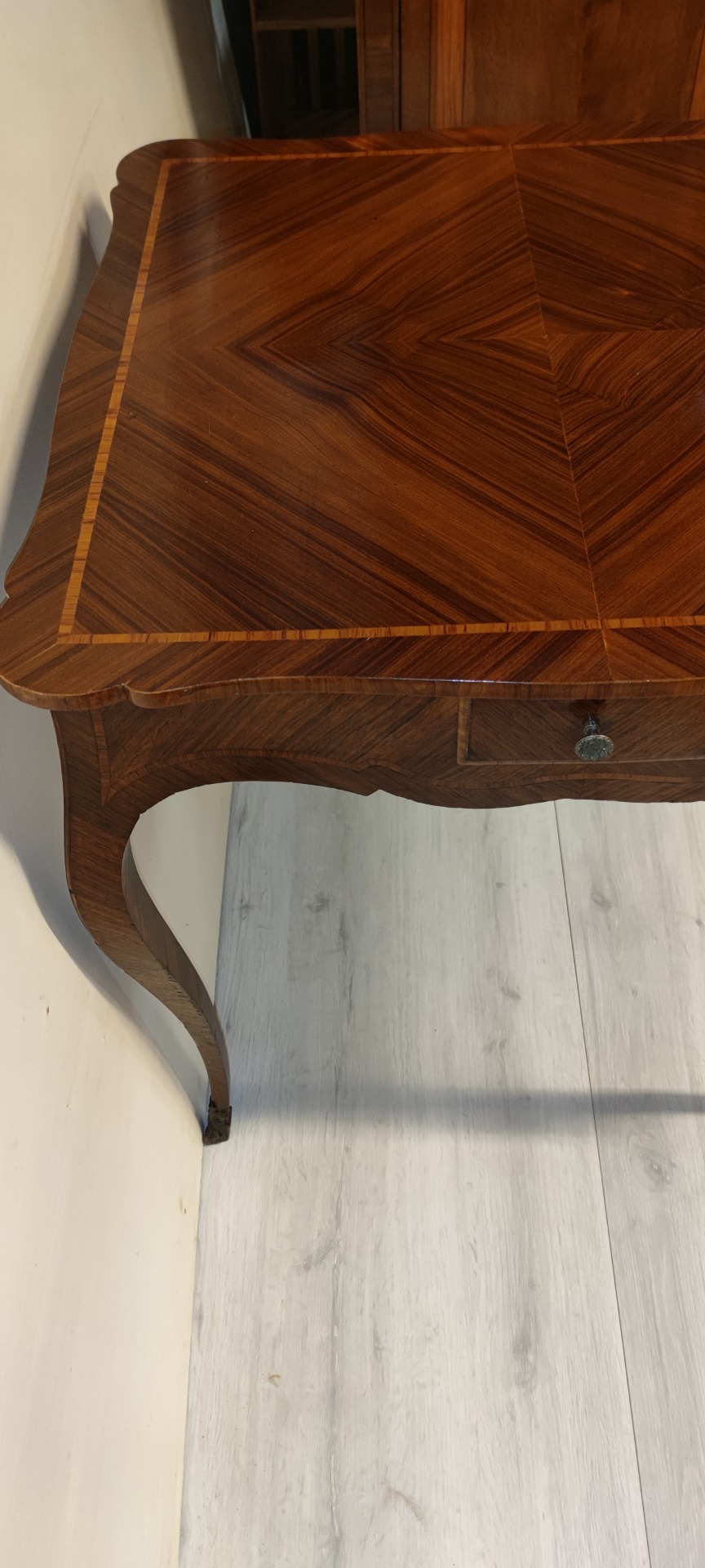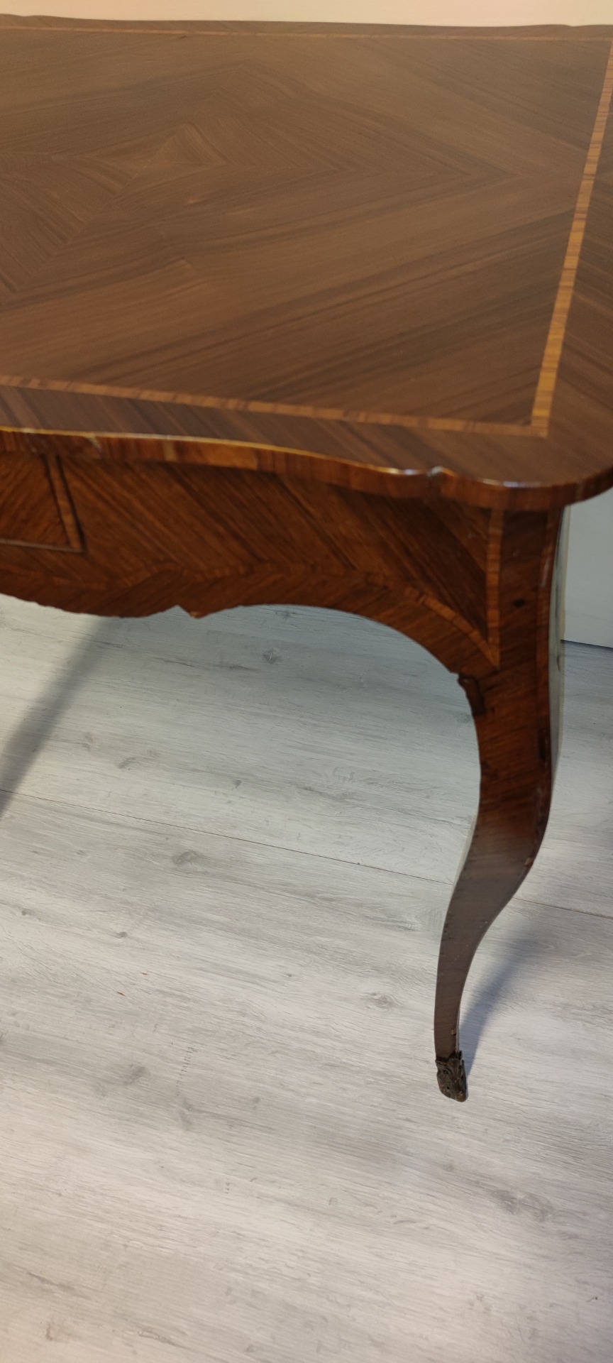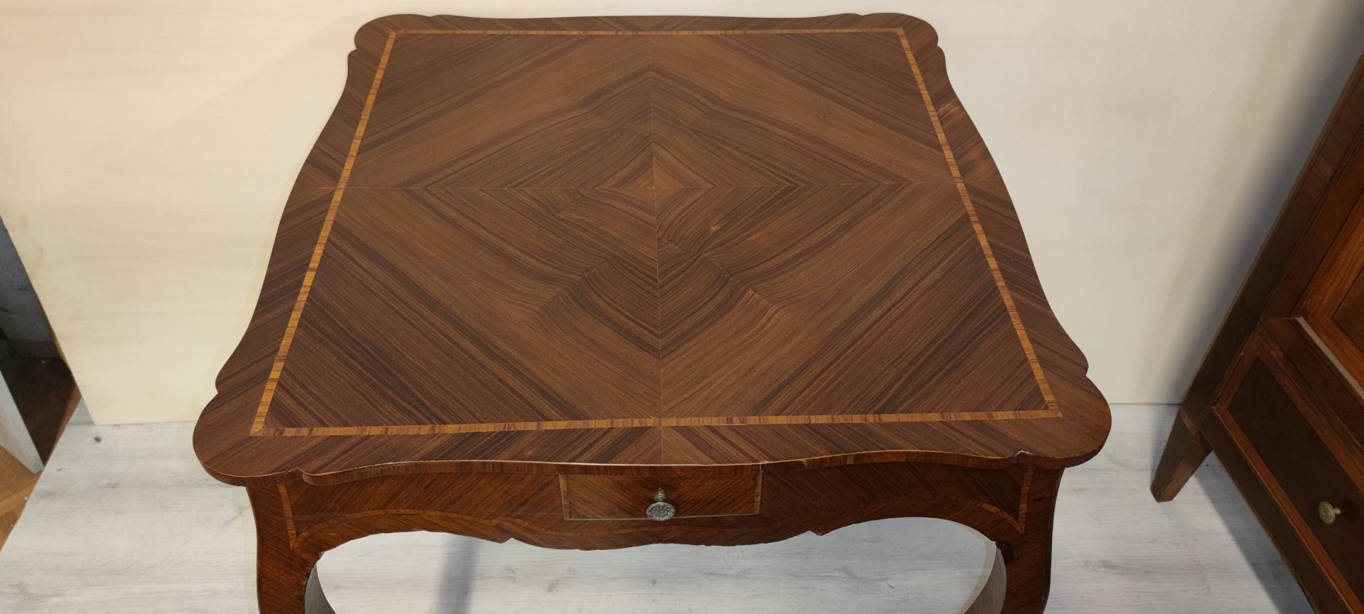Rosewood gaming table with four drawers and cabriole legs. Napoleon III period. Measures eighty by eighty. Period up to 1800.