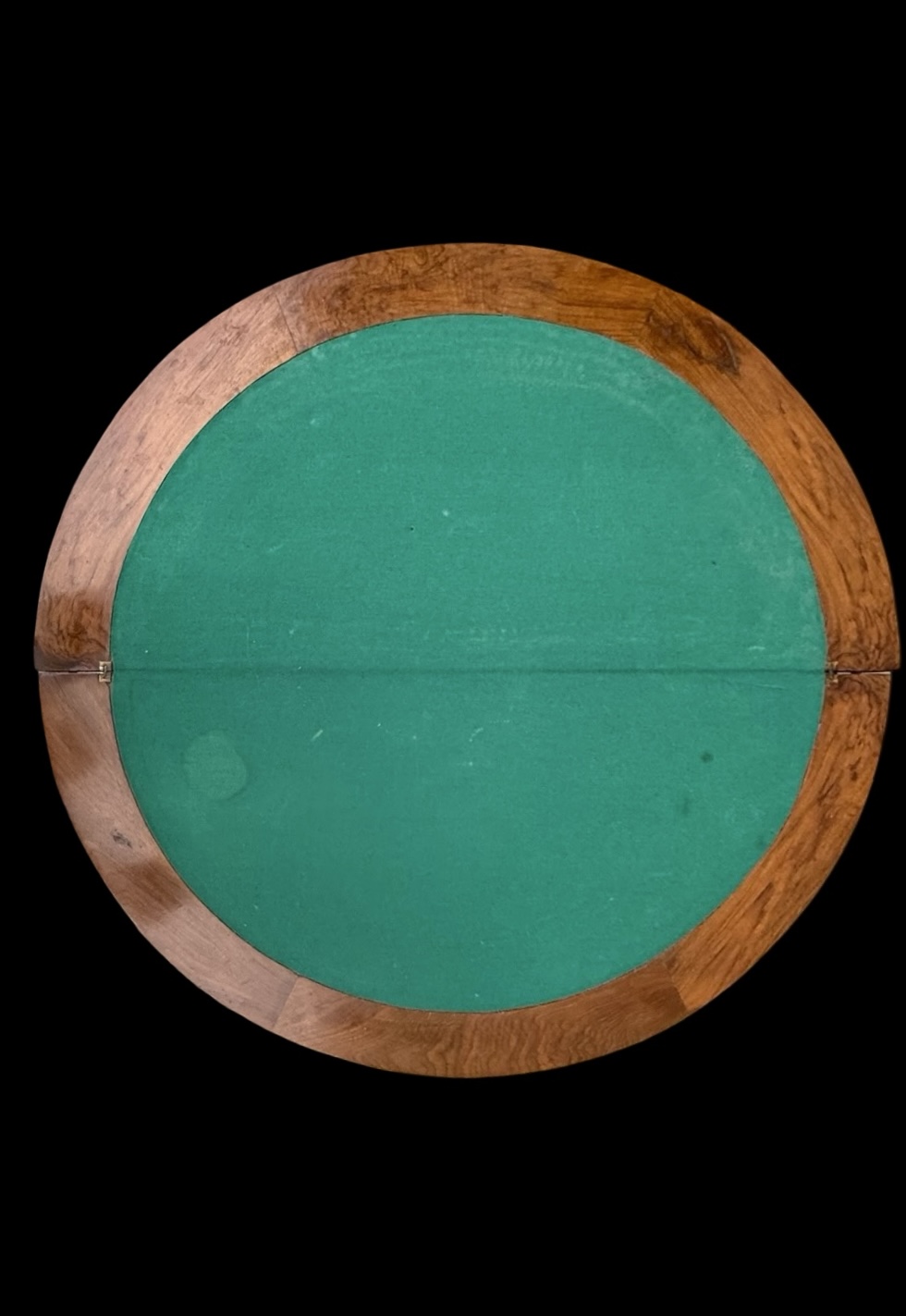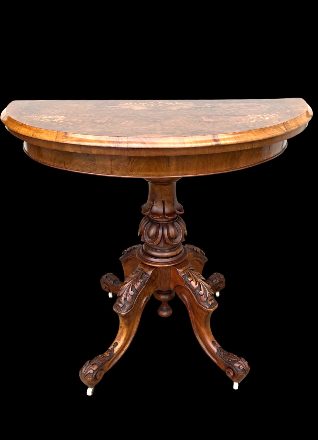 Walnut veneer burr game console table with inlay.