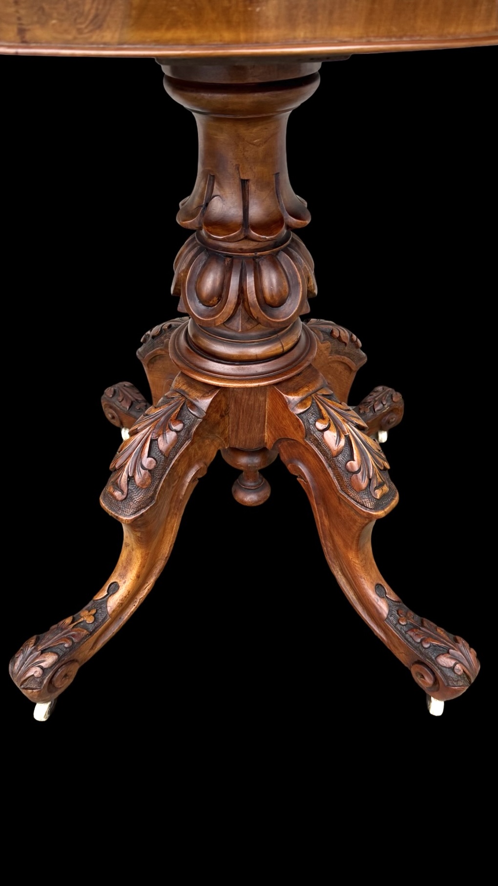 Walnut veneer burr game console table with floral inlay. Rotating split top with internal drawer. Leg with four feet. Cm 46 (92 open). H: cm 74