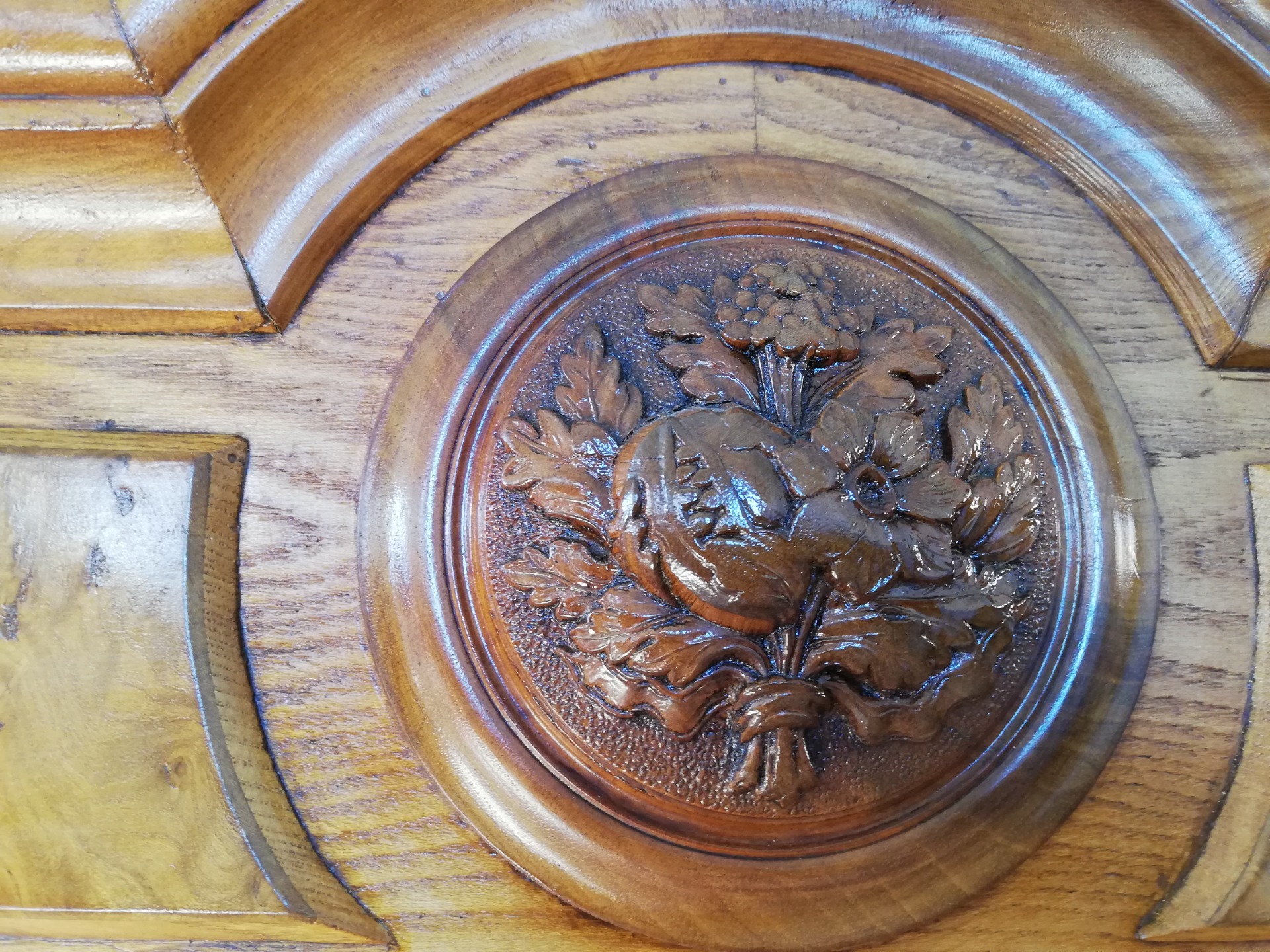 Elmwood cabinet, dating back to the 19th century, notable for its specific dimensions.Measurements:
