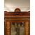 Vetrina 3 porte inglese, dei primi del 1900, in mogano con intarsi. La vetrinetta presenta il corpo centrale avanzato rispetto ai laterali e possiede un'alzatina anch'essa intarsiata e due vani a giorno.