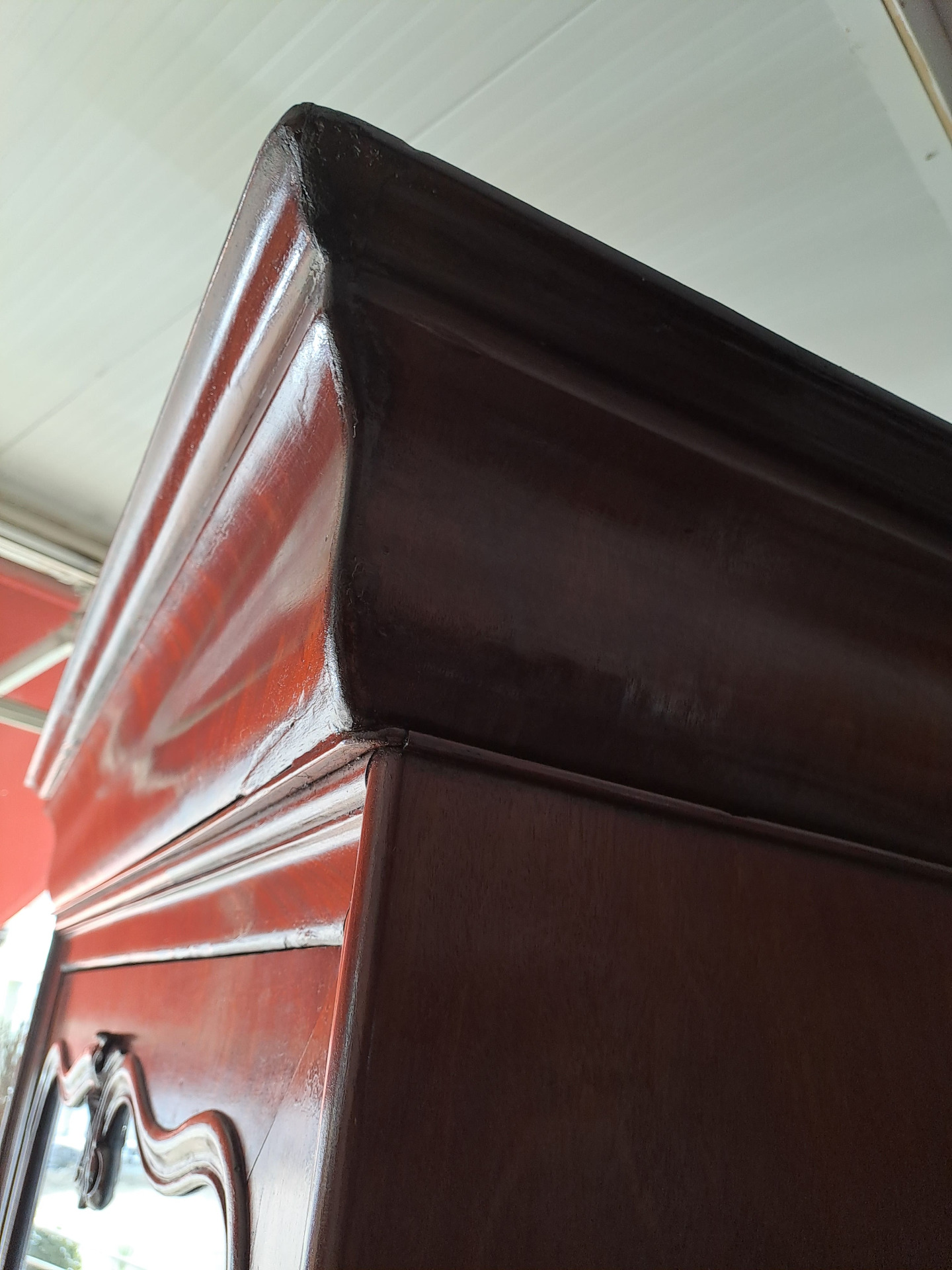in mogano, con doppio cassetto nella parte inferiore. Epoca seconda metà 800 Dimensioni: Altezza 202 cm – Lunghezza massima 104 cm – Larghezza massima 48 cm Spese di spedizione a carico cliente. Per maggiori informazioni: info@antichitadaziano.com