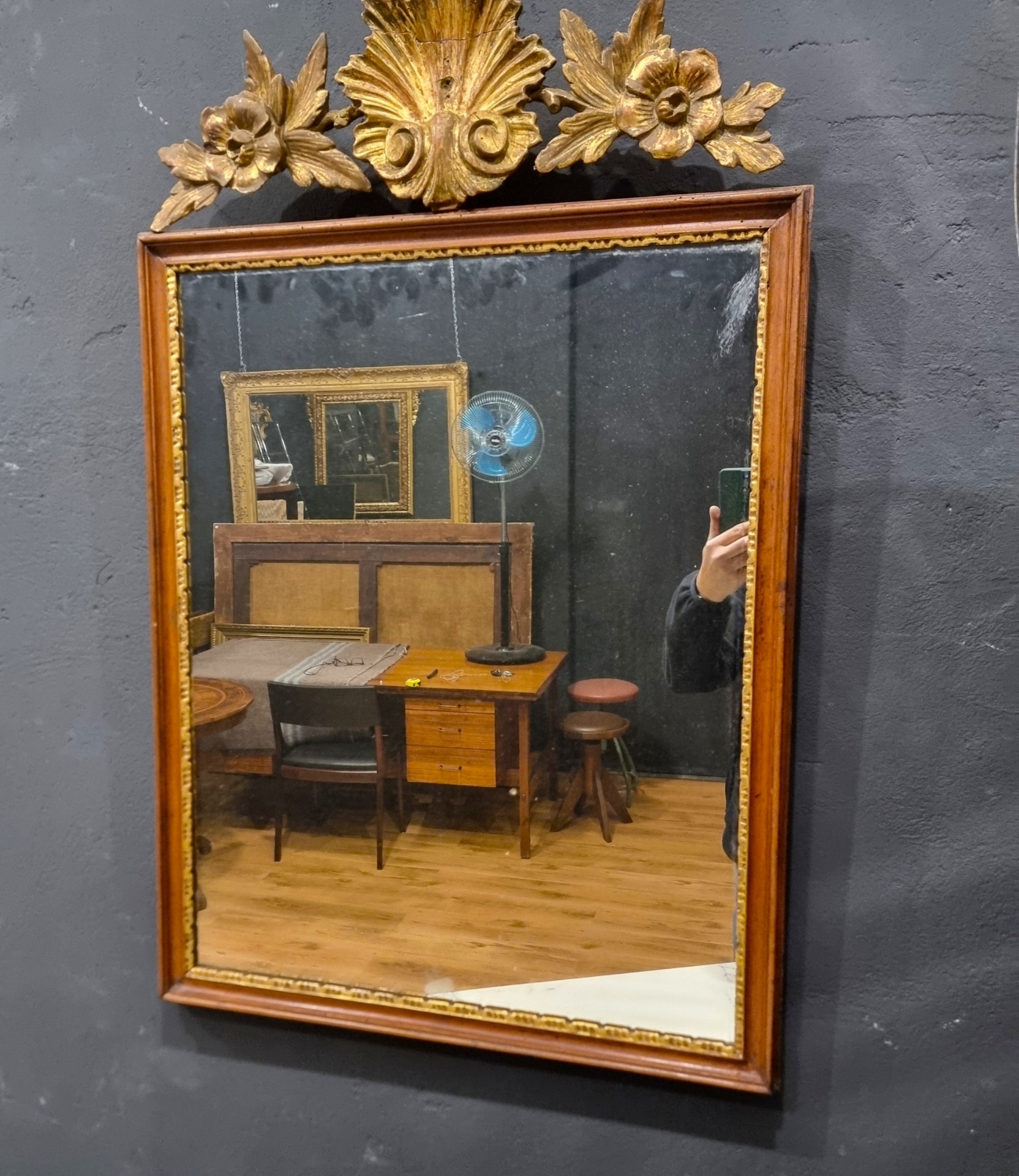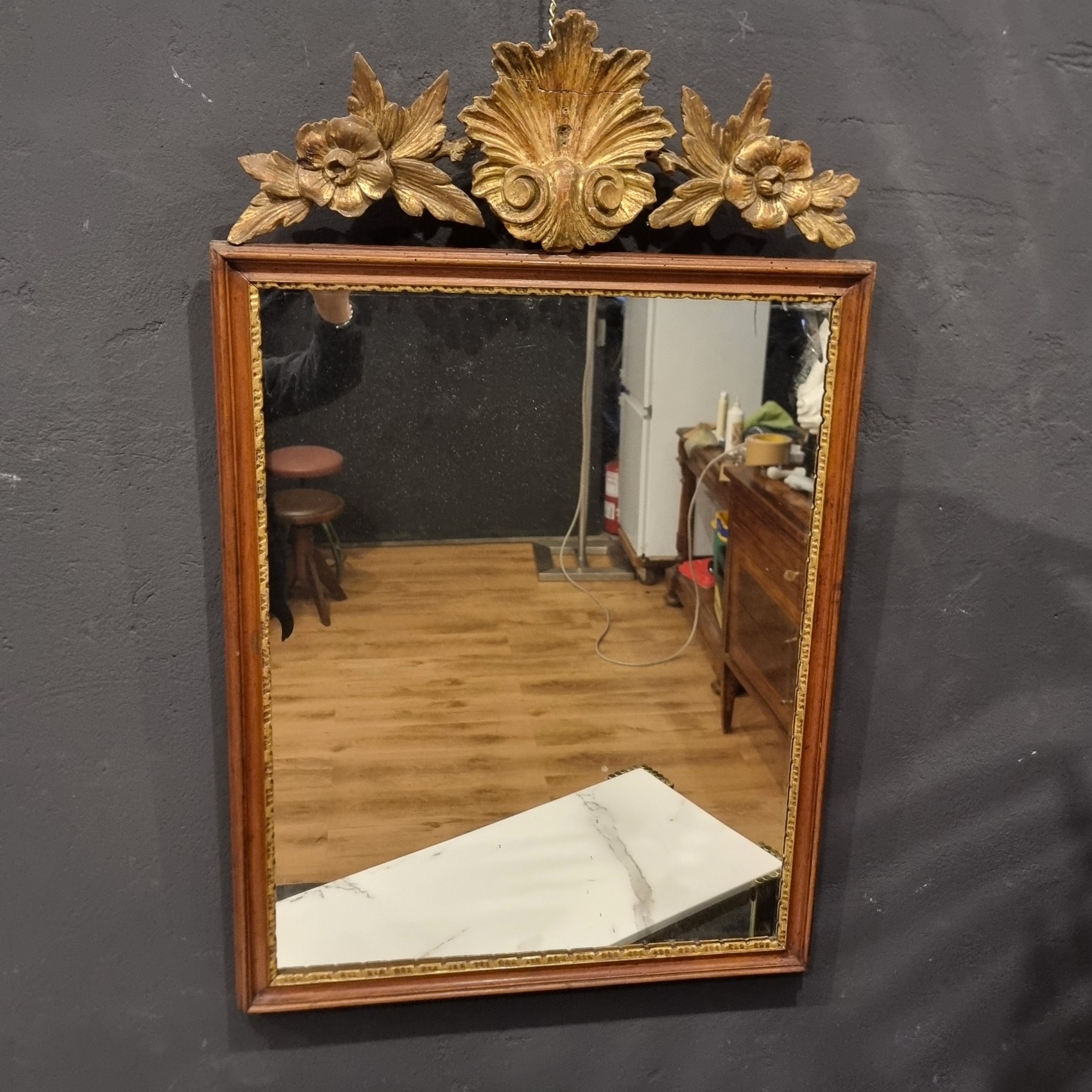 18th-century Louis XVI mirror frame with gilded crest, Venice