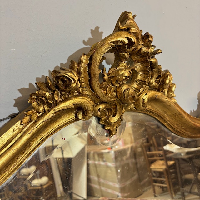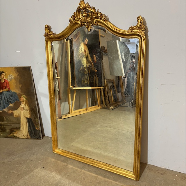 Antique Louis XVI mirror, early 1900s, French gilded beveled mirror. Measures 156 x 100 cm