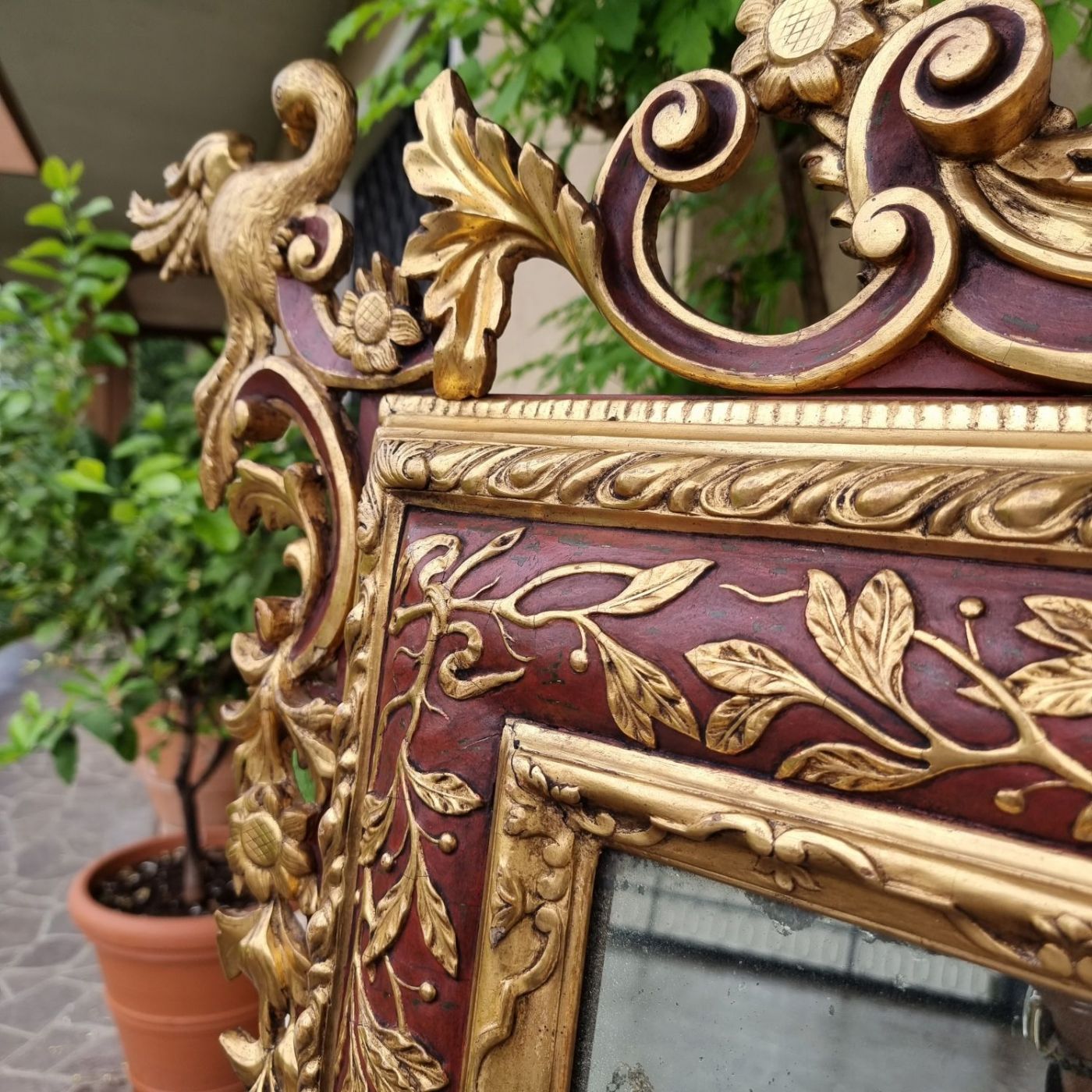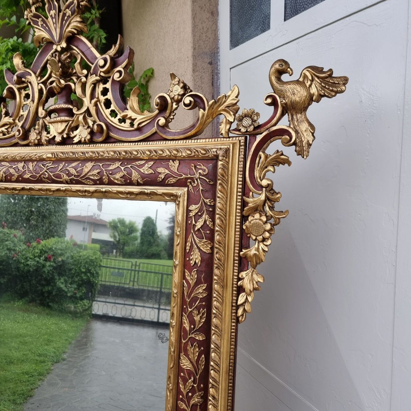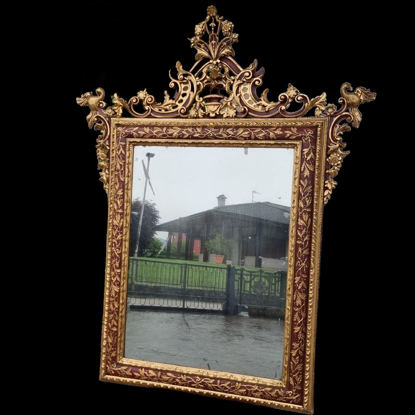 In conclusion, this Important Wooden Mirror from 1850, Lacquered and Gilded with Frieze - Venice is more than just an object; it is a piece of history and elegance, a connection with the past that can live in your present. Finally, don't miss the opportunity to own this extraordinary piece of historical craftsmanship.