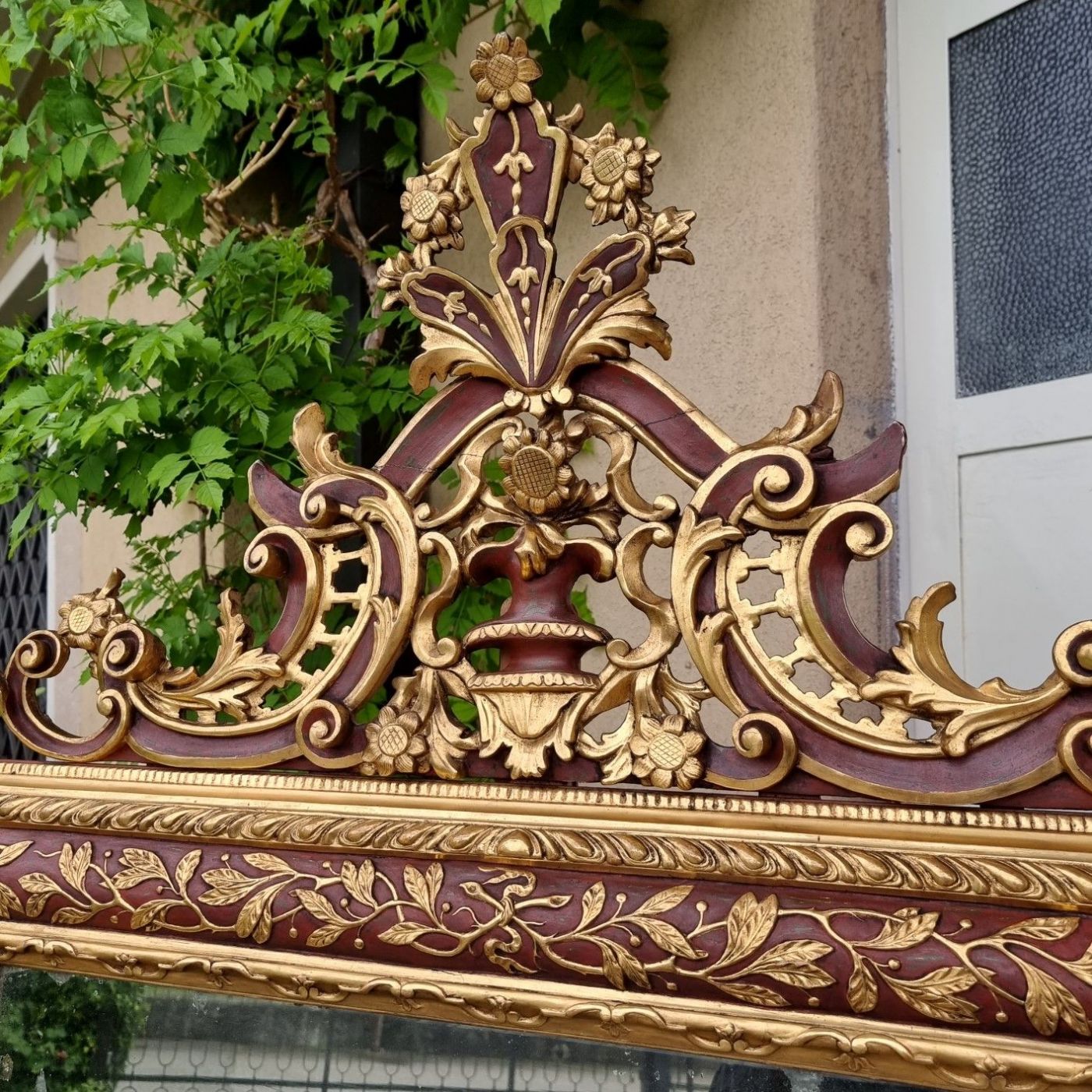 First of all, with its dimensions of 180 cm in height x 140 in width, this mirror is a magnificently preserved example. Furthermore, every detail sculpted in the wood tells a story, making this piece unique. Surprisingly, the artist has masterfully captured the light and elegance of 1850s Venice.