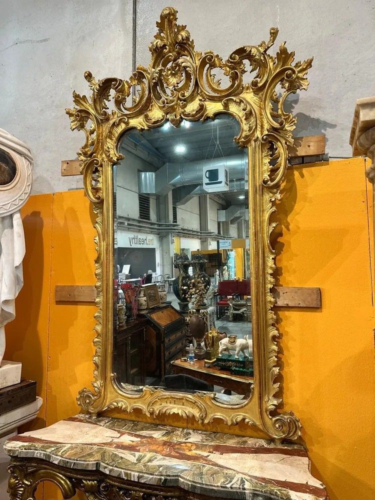 Maestosa Specchiera in Legno Dorato, XIX Secolo
