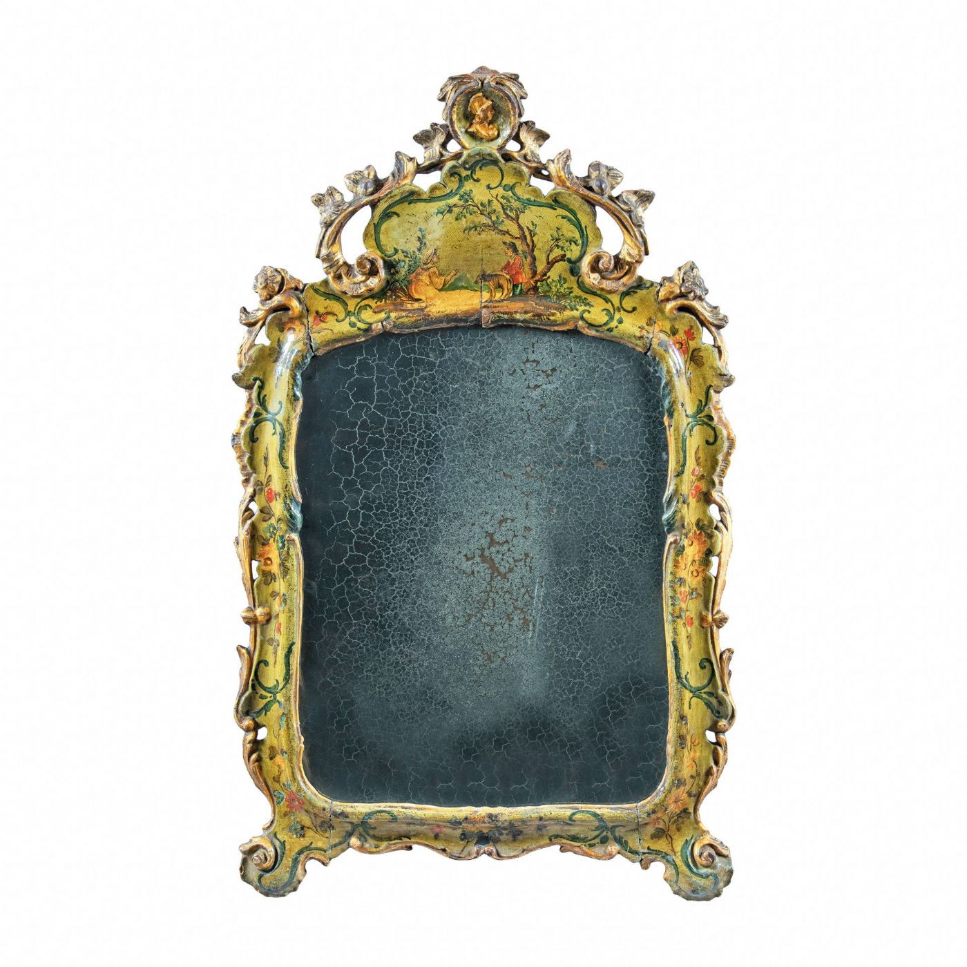 Small mirror in carved, lacquered and painted wood. Venice, 18th century.