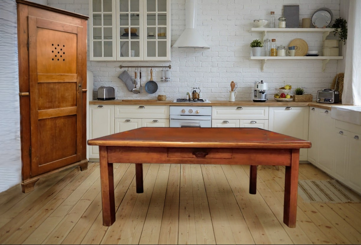 Questa coppia di pezzi d’epoca rappresenta una proposta di arredo ideale per la cucina, combinando funzionalità, materiali pregiati e charme storico. Il tavolo e l’angoliera creano un insieme armonioso, che valorizza qualsiasi spazio, anche in ambienti modernissimi, grazie al loro stile senza tempo e all’eleganza naturale del legno.