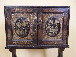 Lacquered two-door cabinet of Chinese origin, 19th century: L50xP30xH95 cm