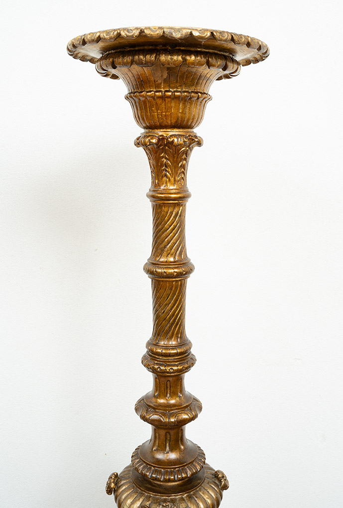 Description: Pair of Florentine torcieri (torch holders) in gilded and carved wood, from the mid-19th century.