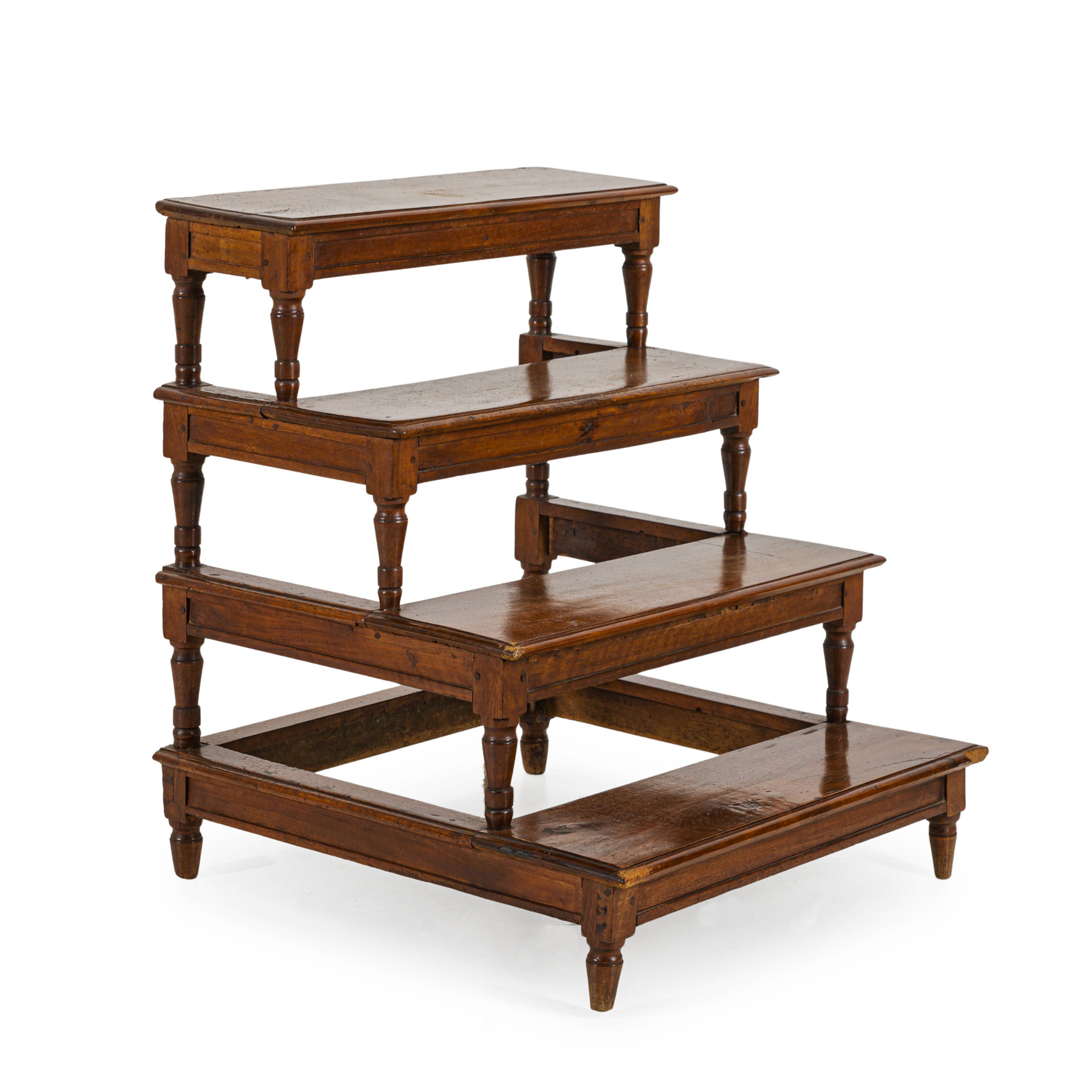 Unique neoclassical library ladder with four shelves in solid walnut, early 19th century, Piedmont