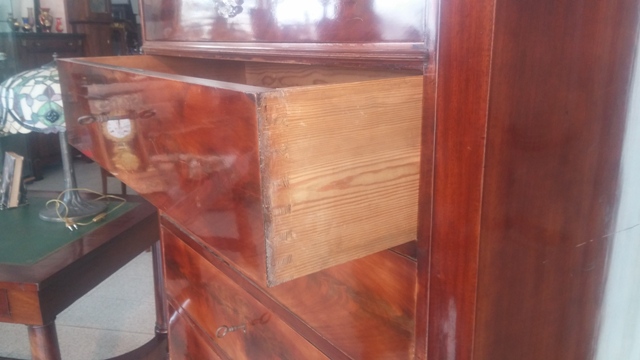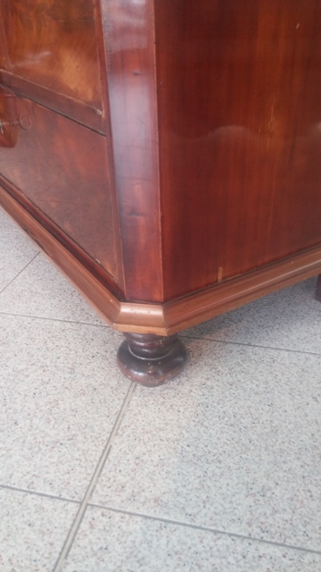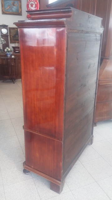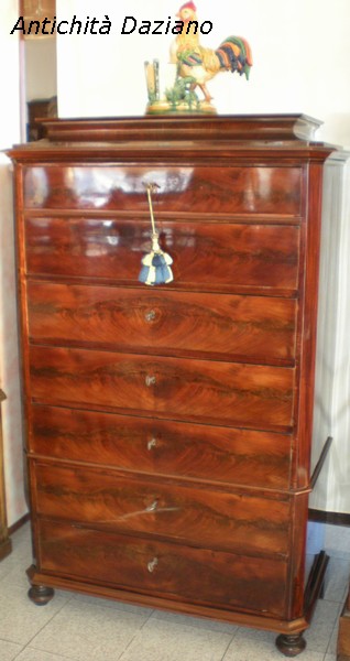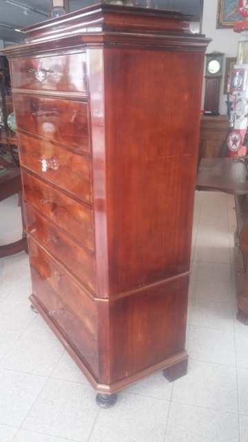 19th-century Biedermeier mahogany chest of drawers. Dimensions: Width 103 cm, Depth 52 cm, Height 163 cm. Shipping costs to be evaluated.