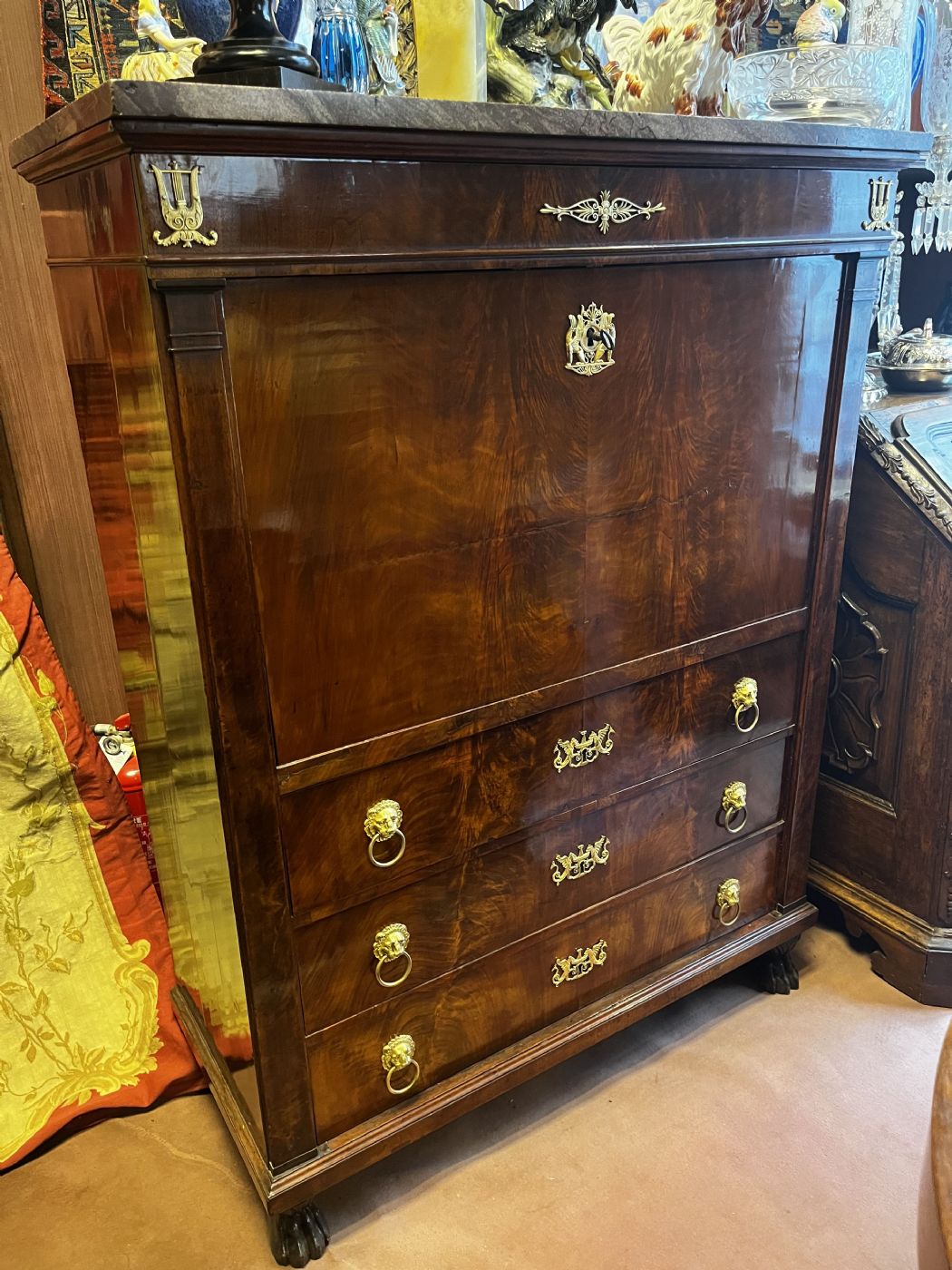 Empire style secretaries in mahogany with bronze details from the period and lion's paw feet.