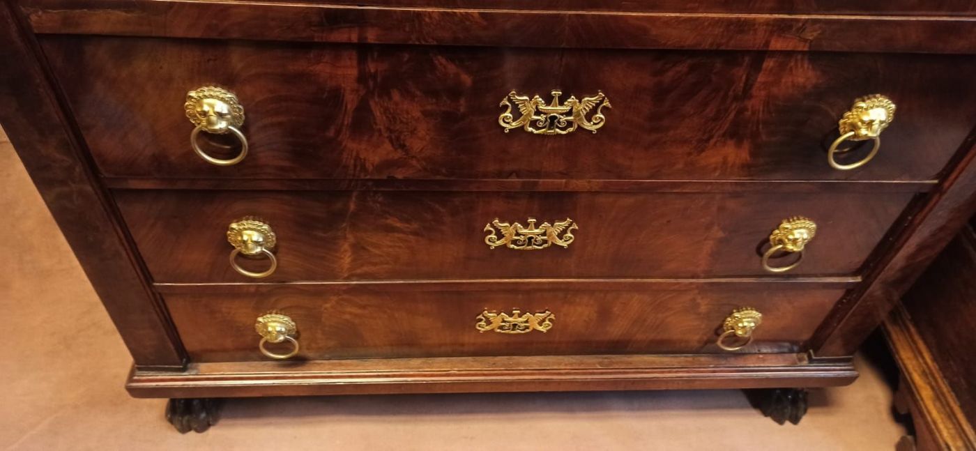 Empire style secretaries in mahogany with bronze details from the period and lion's paw feet.