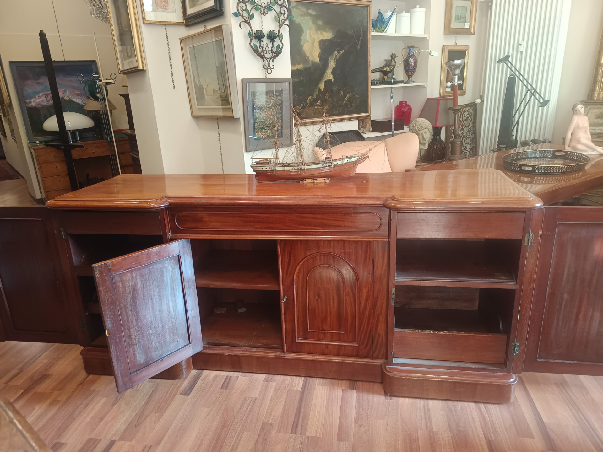 Credenza inglese in legno di mogano. Misure: cm 2,15 x 55 x 92 di altezza