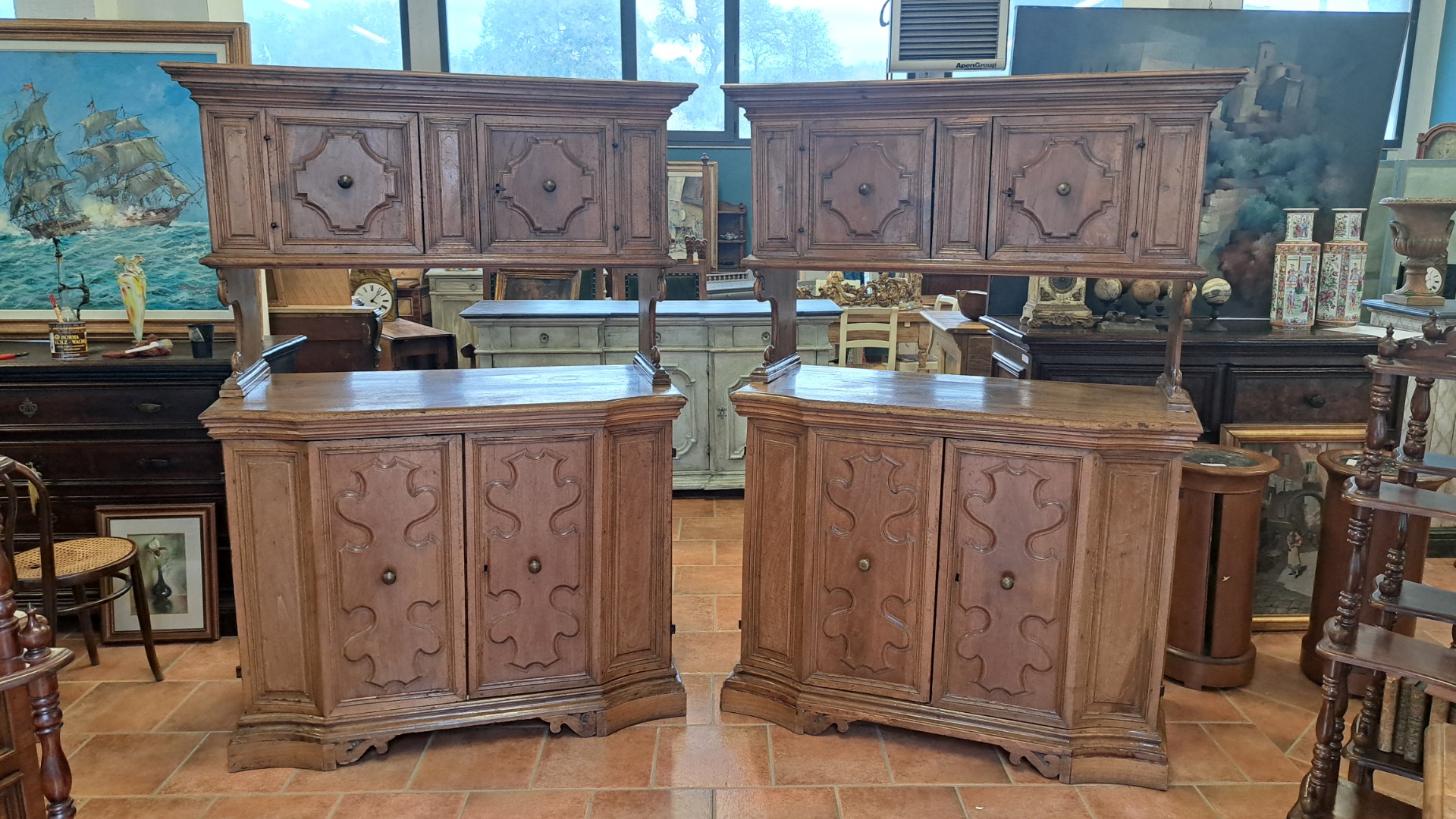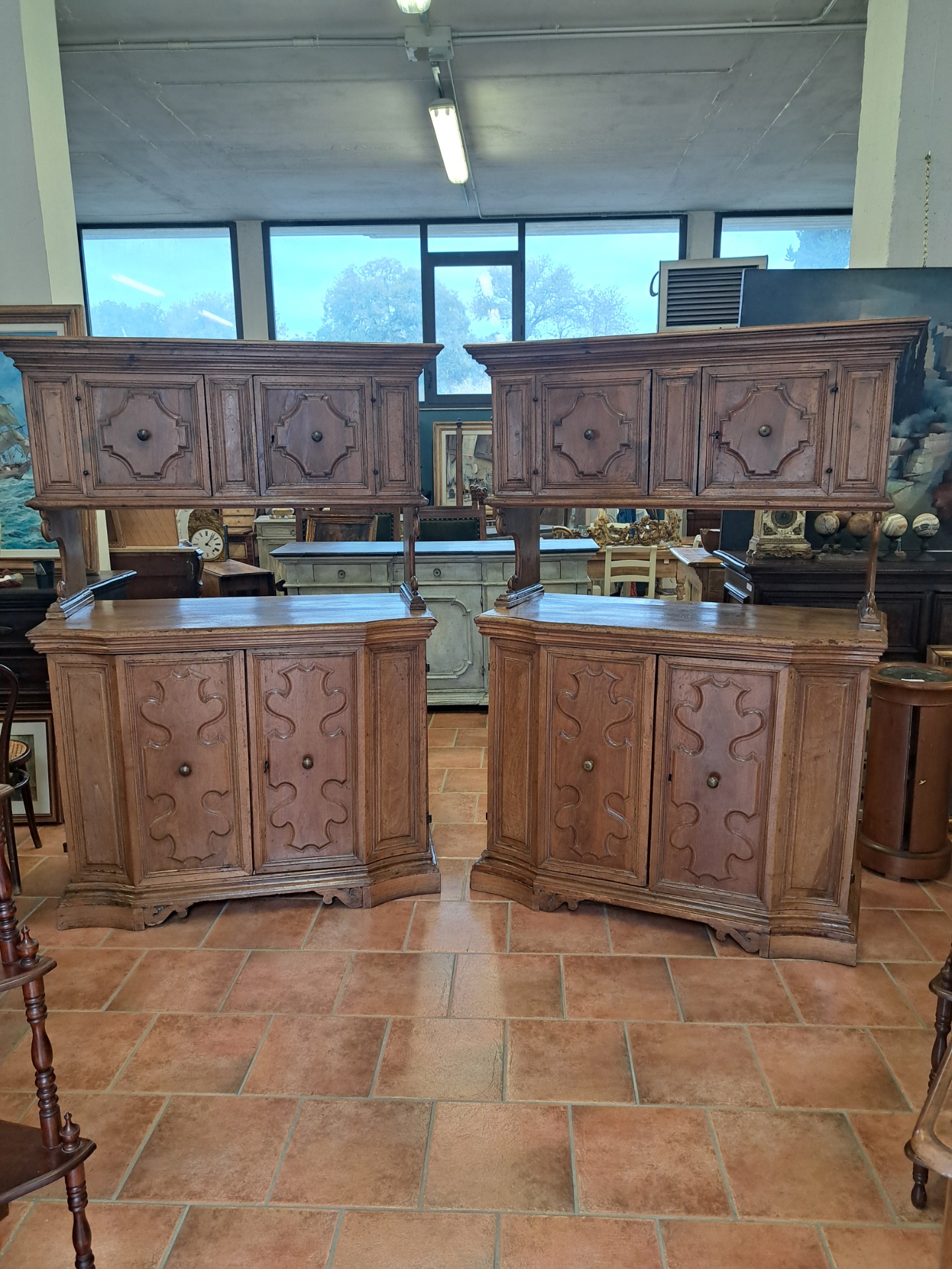 Pair of 17th-century sacristy cabinets in threaded walnut