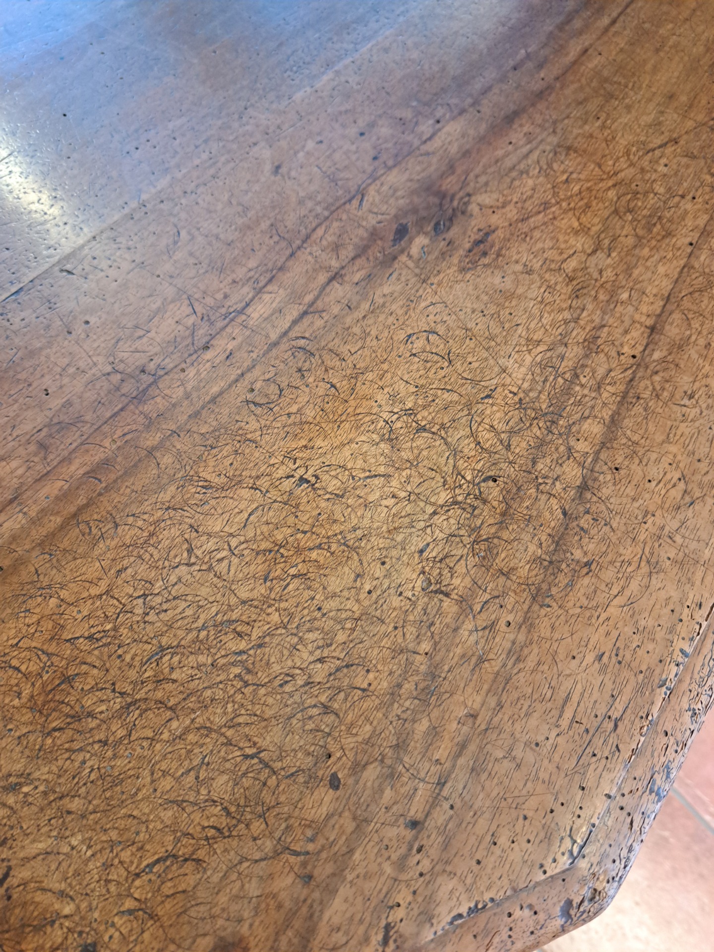 Wonderful pair of double-bodied sacristy cabinets, 17th century, in blond walnut. Original hardware and nailing, beautiful curved shapes on the lower cabinet, carved panels with an elegant maple thread, bracket feet, contemporary bronze knobs.