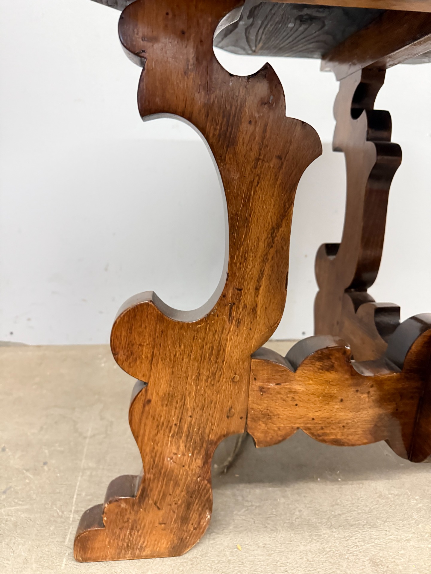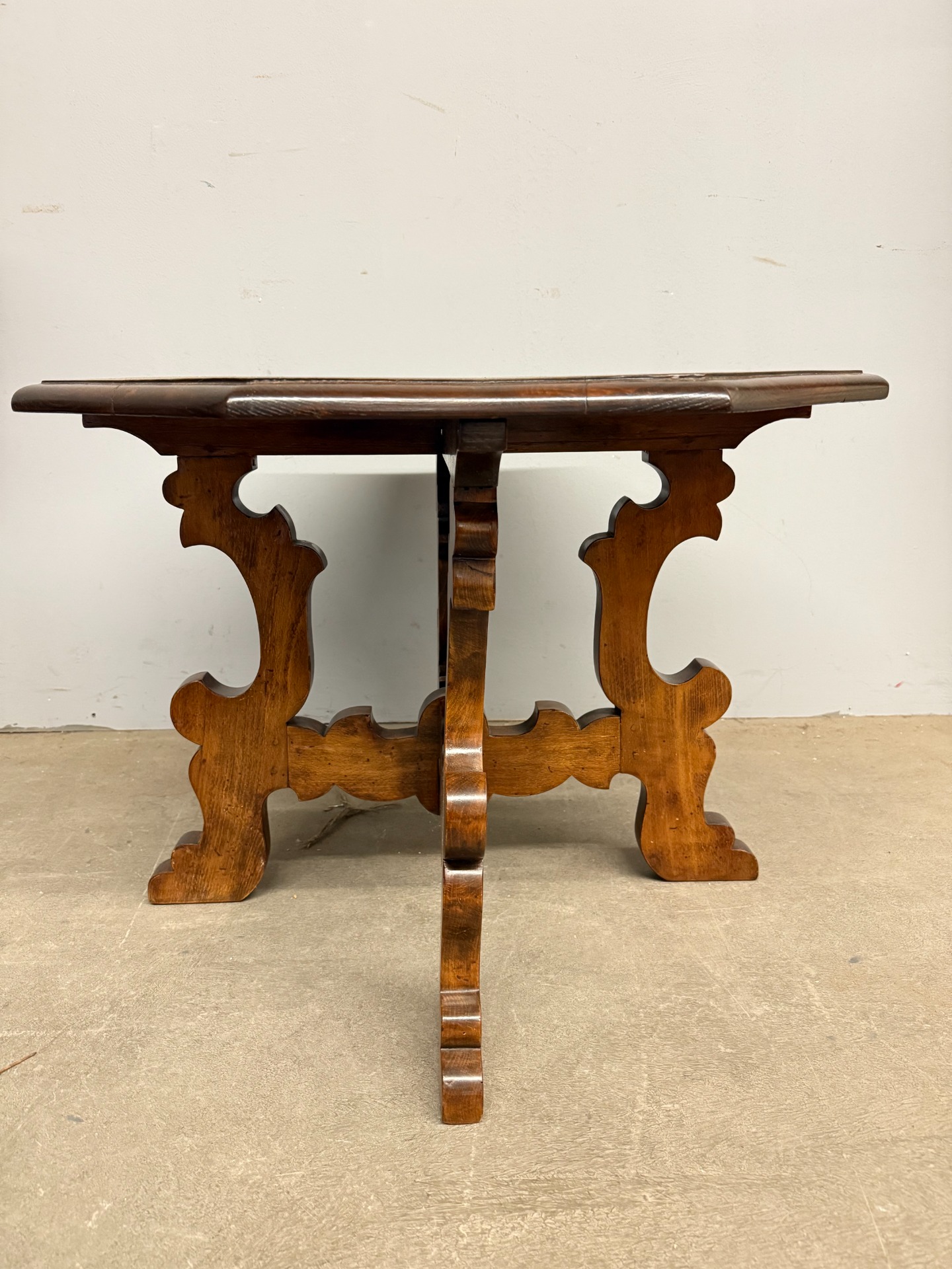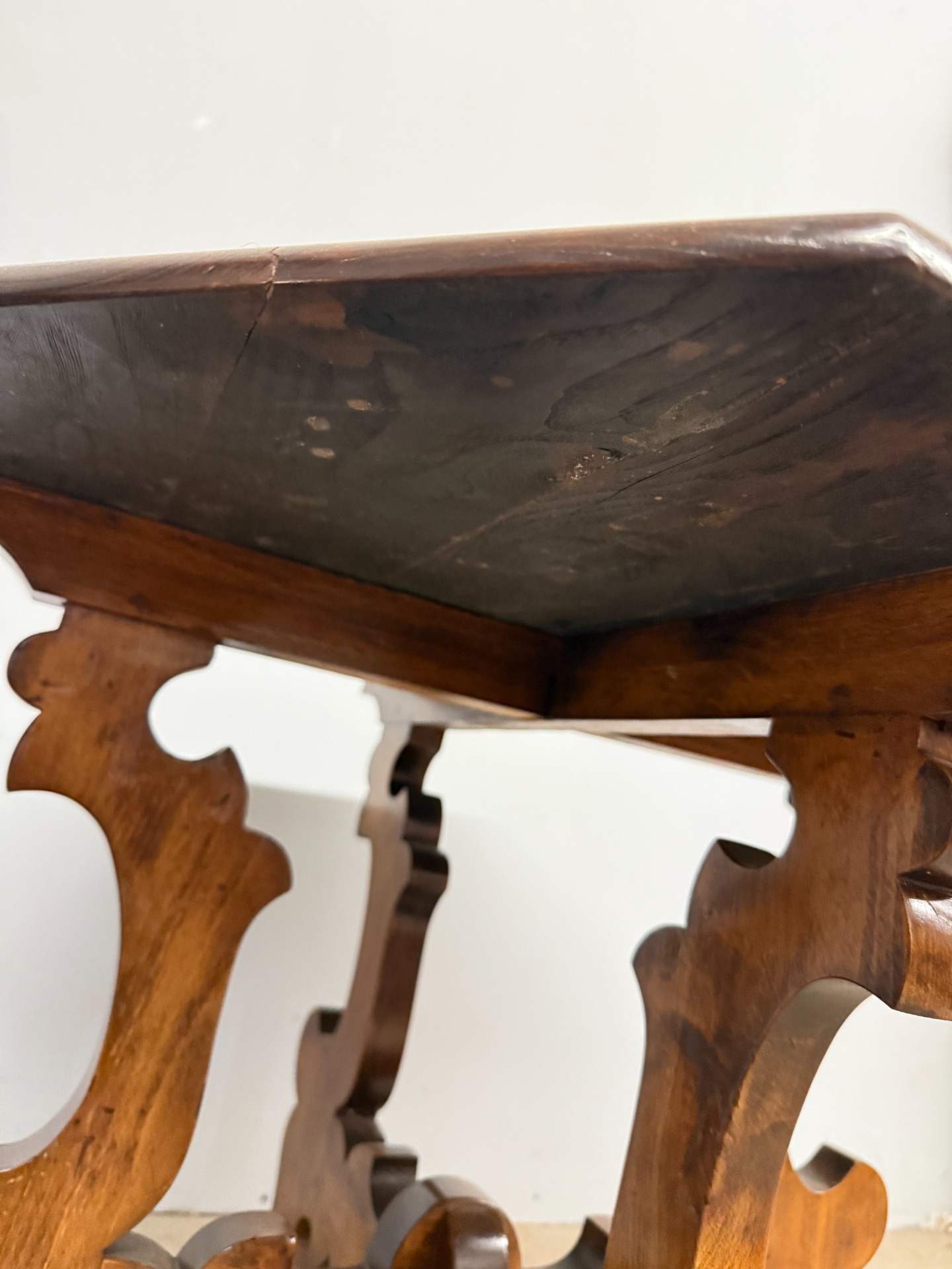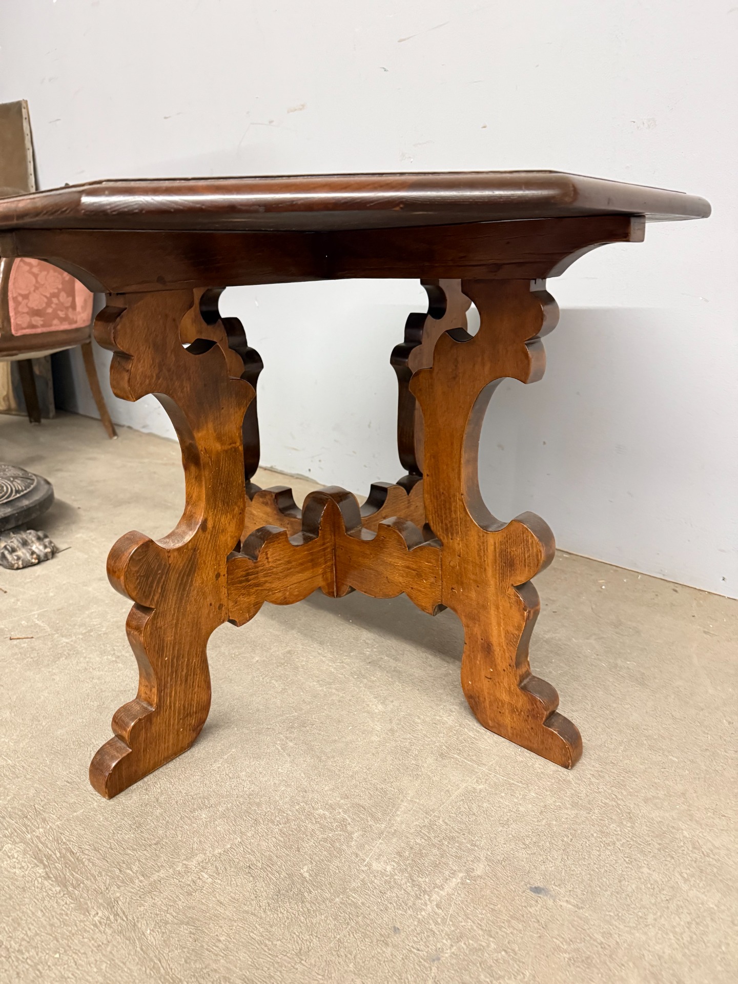 20th century solid walnut fratino-style coffee table, 76x54x72cm. Handmade.FOR MORE PHOTOS, INCLUDING DETAILS, PLEASE VIEW THE GALLERY ON OUR WEBSITE WWW.ANTIQUARIATOCOSTA.COM