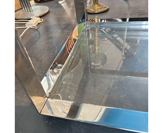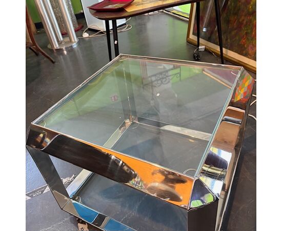 Metallo cromato 55 x 55. h 40 . Stato molto buono . Doppio ripiano a vetro.