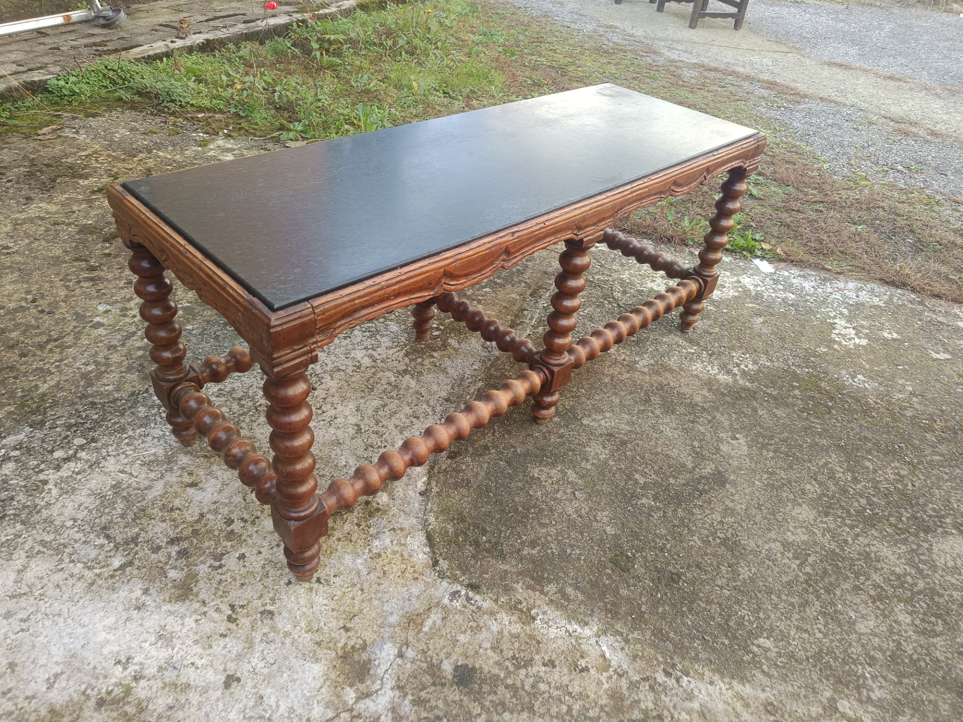 Former 17th-century bench transformed into a coffee table with the addition of an Alpi green marble top.Measurements: cm 115 x 41 x 50