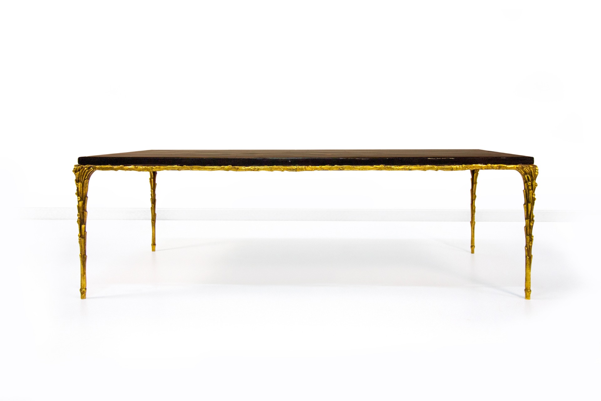 Coffee table in gilded bronze and lacquered wood, 20th century