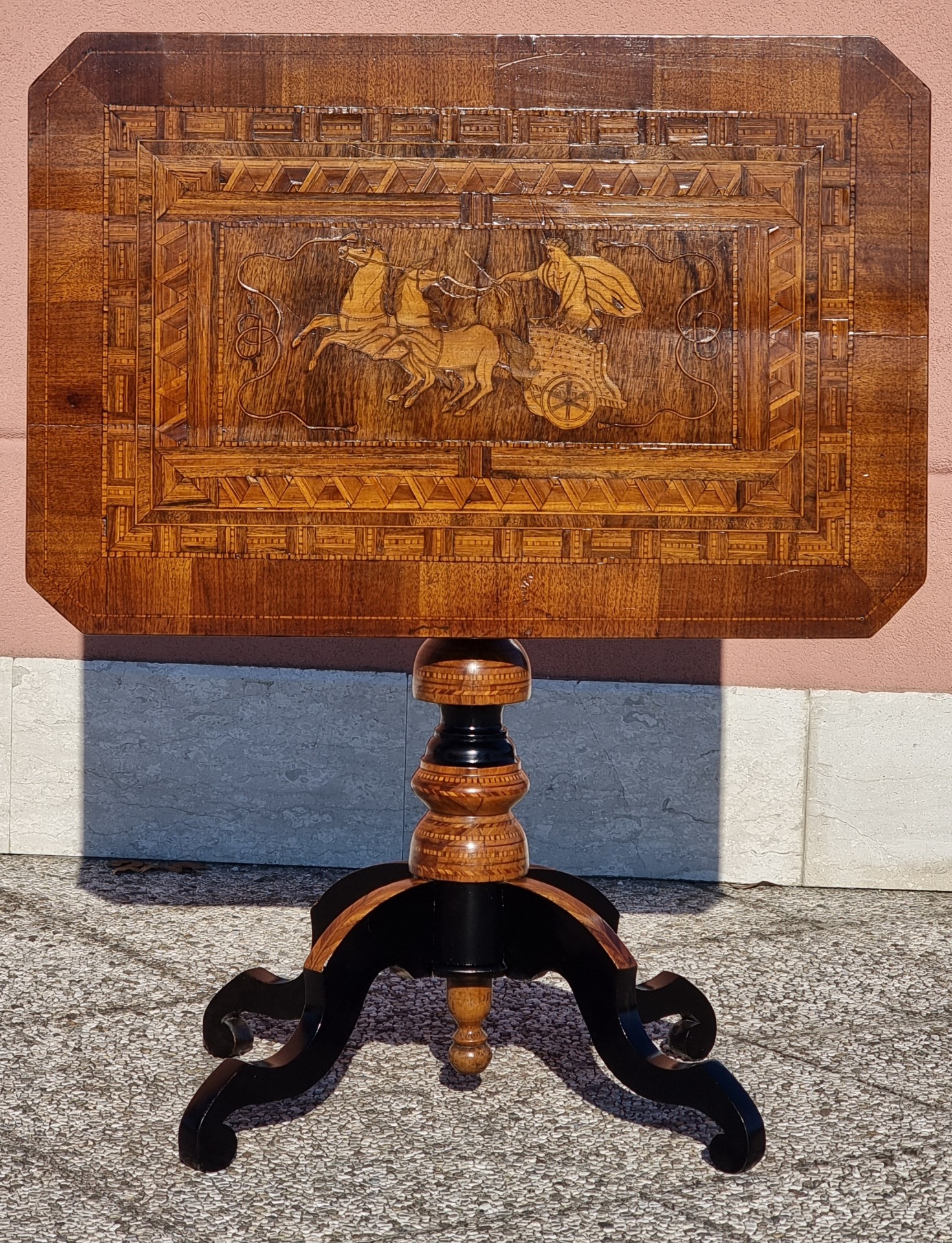 Tavolino a vela intarsiato, bottega di Rolo (Emilia), seconda metà dell’Ottocento