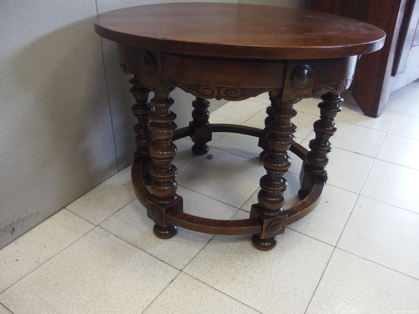 Beautiful round coffee table in walnut wood, Louis XIII style, 19th century, from Italy.The table is completely original and does not require restoration, only waxing (SEE PHOTOS).
