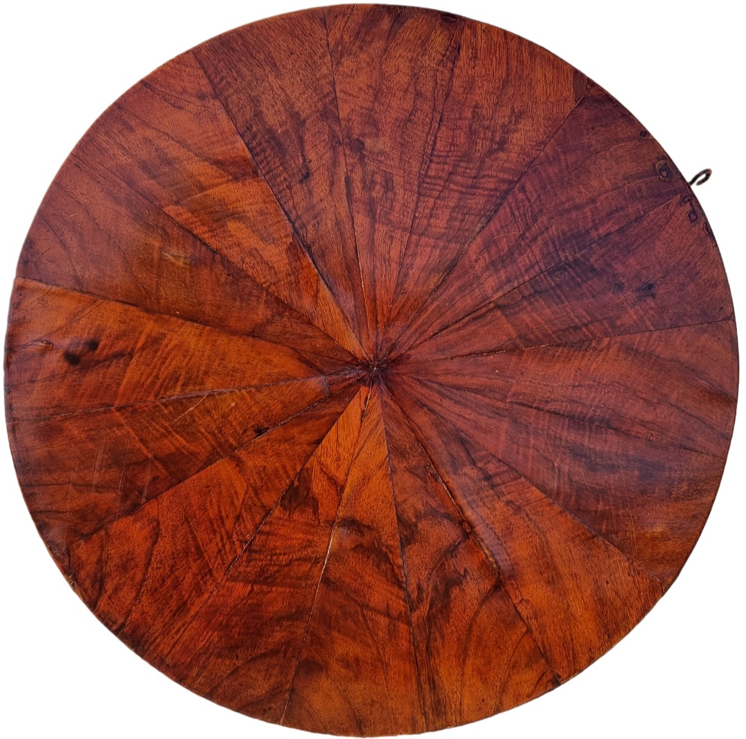Venetian three-legged walnut table, inlaid top with segments – Early 19th century