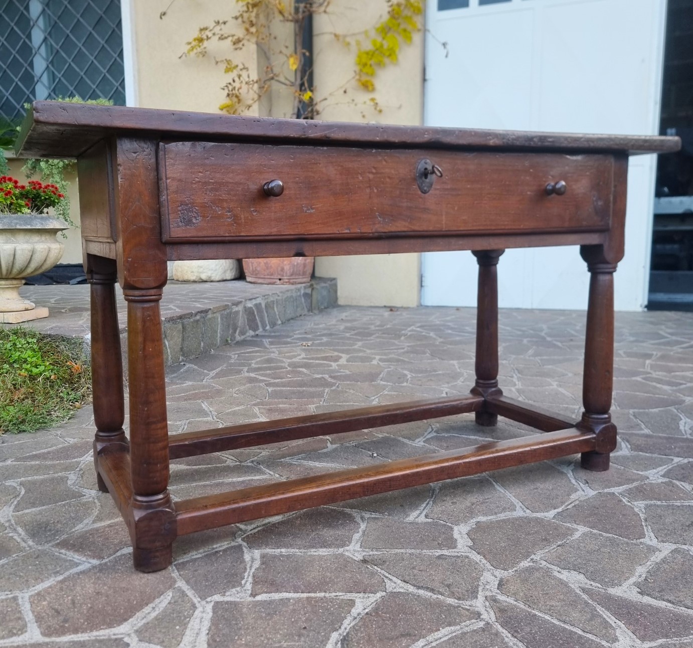 17th-century Tuscan oak refectory table A masterpiece of history and authenticity This extraordinary 17th-century Tuscan oak refectory table represents one of the purest expressions of Italian craftsmanship of the period. Made entirely of solid oak, it impresses with its splendid patina that tells centuries of history and life. In excellent overall condition, it measures cm. 140x59xh80, perfect proportions for a piece of furniture that is as robust as it is elegant. Today, finding such an authentic and well-preserved piece is truly rare. In fact, its beauty derives not only from the quality of the wood, but also from the charm of time that has made it unique. Therefore, owning it means coming into contact with a tradition rooted in the heart of seventeenth-century Tuscany. Noble materials and excellent workmanship The oak, chosen for its hardness and durability, gives this table exceptional solidity. Furthermore, the manual workmanship of the time, visible in the joints and turned legs, testifies to the very high level of the 17th-century Tuscan artisans. Despite the passage of time, the structure has remained perfectly stable and well-balanced. Thus, every sign of the wood becomes a trace of the past, a detail that adds character and authenticity. This table is not only a piece of furniture, but a tangible fragment of Italian history. Functional elegance for classy environments Thanks to its simple lines and large surface, the refectory table can be used as a dining table, desk or console in classic or contemporary environments. On the other hand, its imposing but harmonious presence makes it a focal point in any space. Furthermore, the contrast between the warm patina of the oak and the essentiality of the shapes gives a perfect balance between simplicity and refinement. Therefore, whoever chooses this table chooses a style that crosses the centuries with natural elegance. Safe shipping and flexible payments We ship worldwide via Fed-ex-UPS-Dhl with professional packaging and insurance. Shipping throughout Europe to be agreed. Payment by bank transfer, Visa, Mastercard. This careful service guarantees the customer peace of mind and security, fundamental elements when purchasing a piece of furniture of such high historical and artistic value. Conclusion In conclusion, the 17th-century Tuscan oak refectory table is much more than a simple piece of furniture: it is a living testimony of art, history and craftsmanship. Purchasing it means not only enriching your home, but also preserving a cultural heritage of inestimable value.