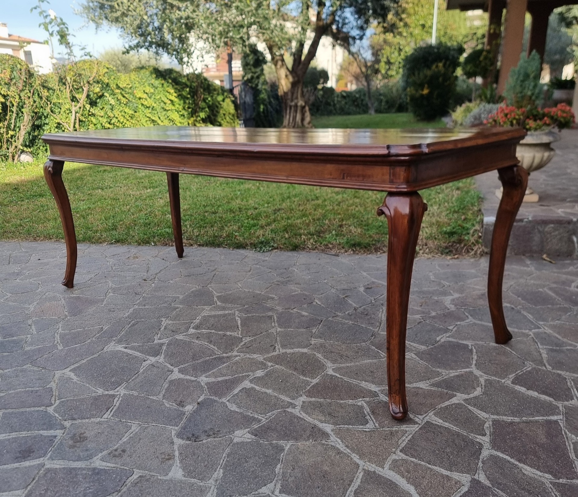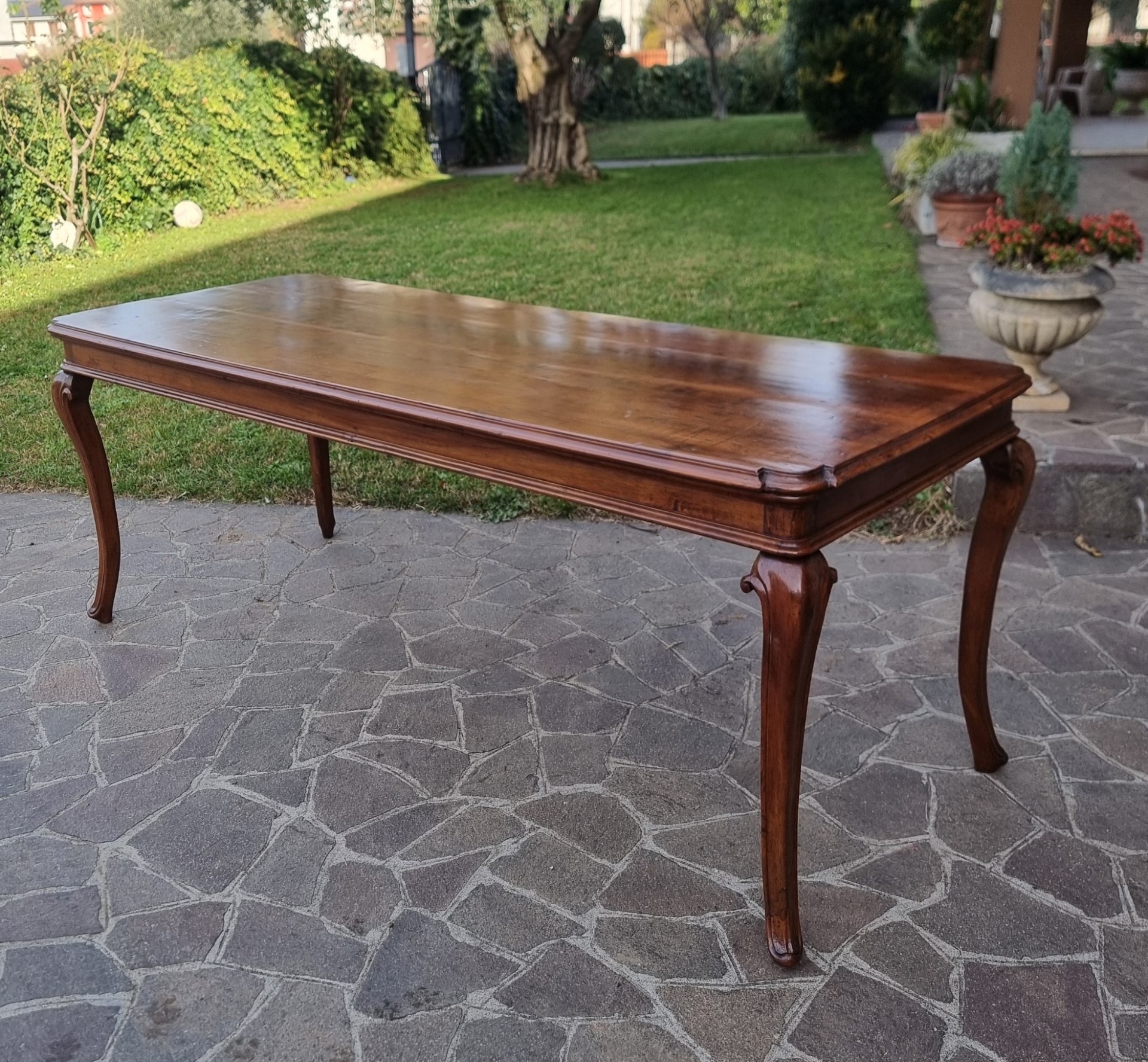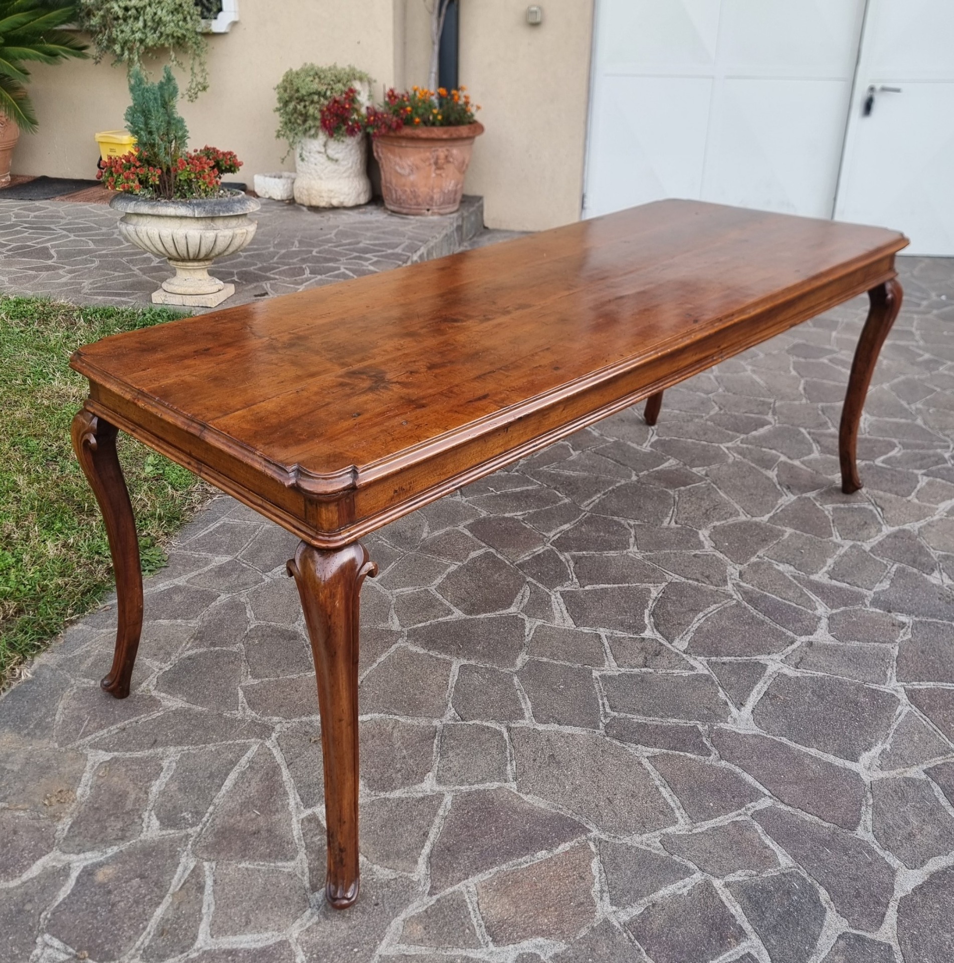 The 18th century Louis XV table in Piedmontese walnut is an authentic testament to the great cabinet-making art of the 18th century. In excellent overall condition and with generous dimensions of 80 x 207 x h 80 cm, this table represents not only a prestigious piece of furniture, but also a smart investment. Furthermore, thanks to its harmonious structure and the superior quality Piedmontese walnut, it immediately offers a sense of refined elegance. In fact, the sinuous line typical of the Louis XV style makes it an object that still fascinates collectors and enthusiasts today.