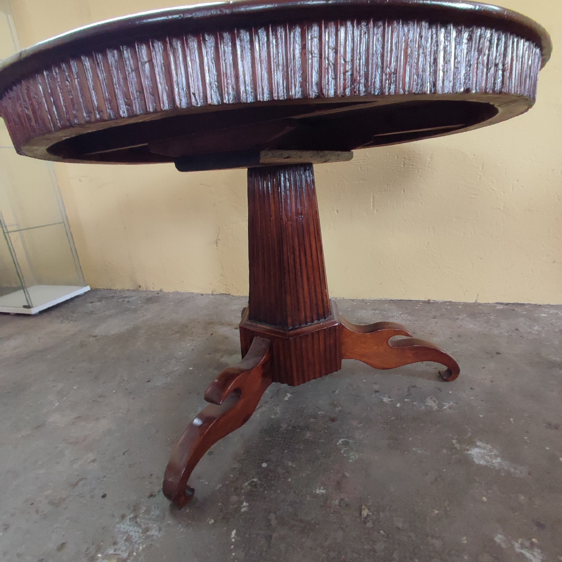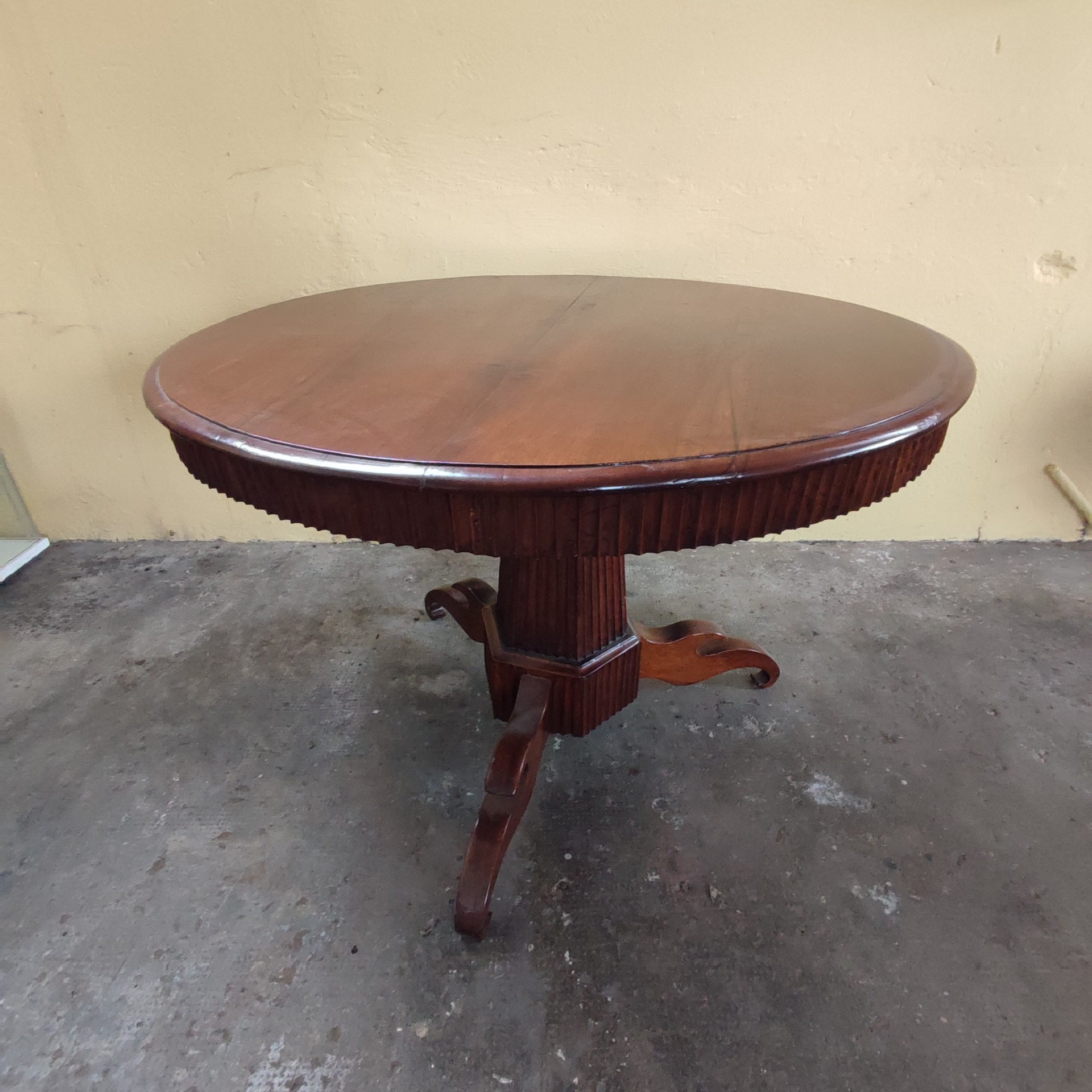 Empire style walnut table with pedestal and fluted frame.Measurements: Diameter 110 cm Height 80 cm We are at your disposal for questions or photos.