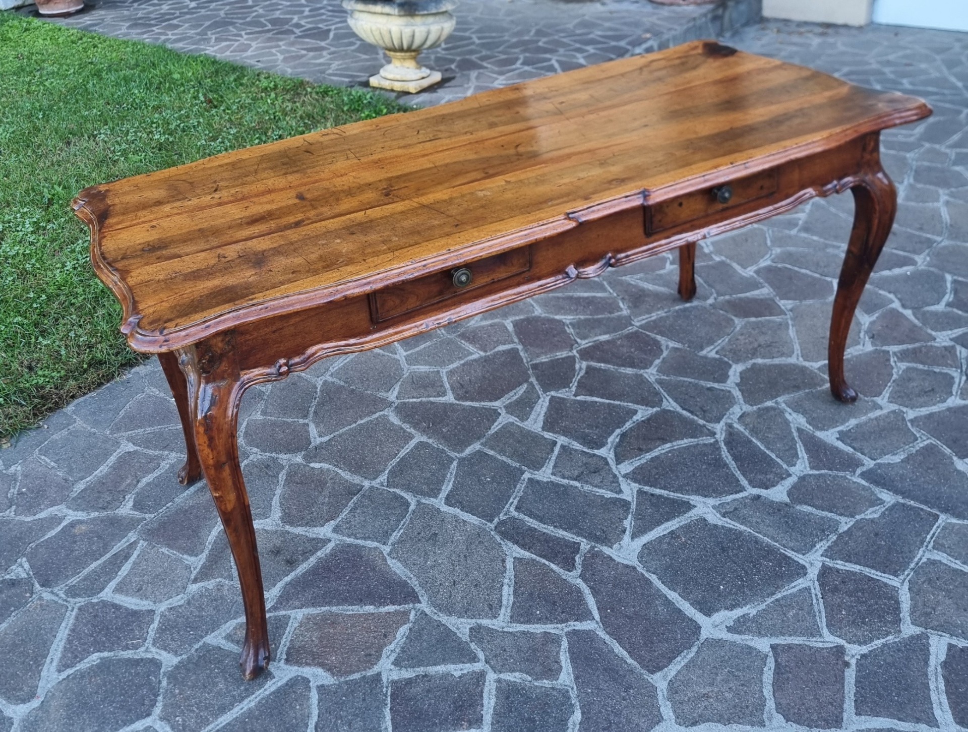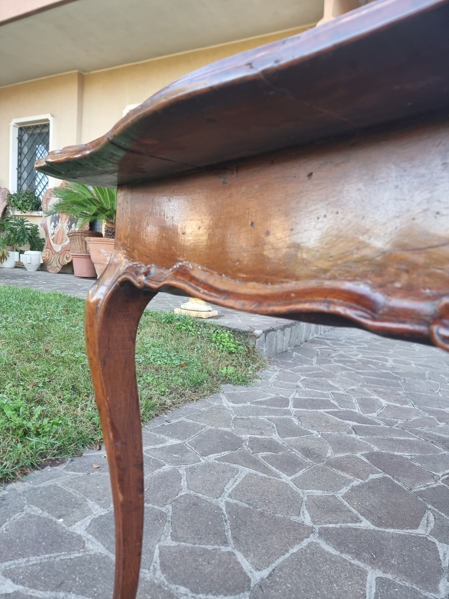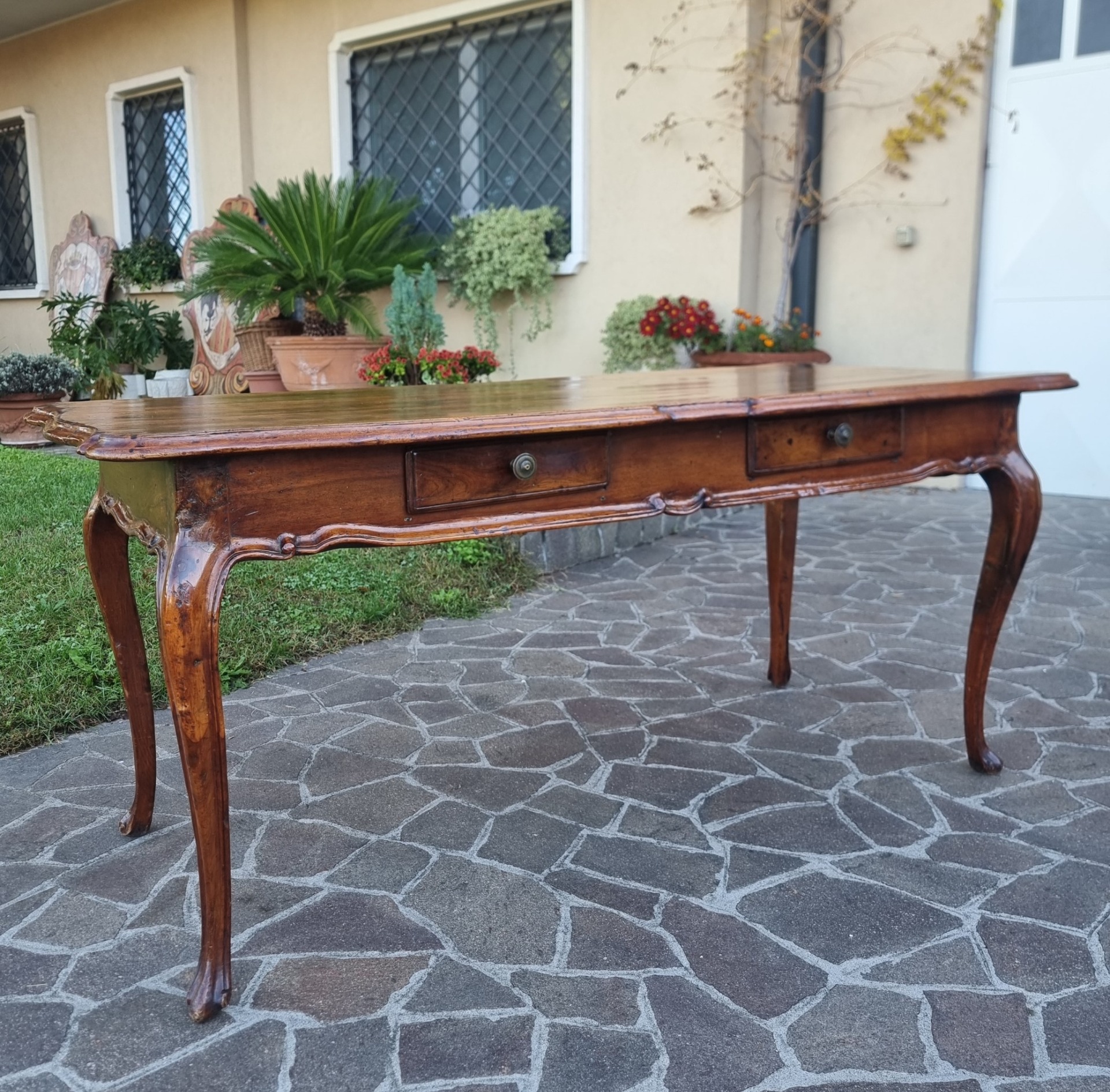 {"traduzioneBreve": "18th century walnut Directoire table from Venice", "traduzioneEstesa": "The charm of the Venetian DirectoireThis prestigious 18th-century walnut Directoire table from Venice is a magnificent example of elegance and formal sobriety. The balance of proportions, the essence of solid walnut and the refined line make it a piece of furniture capable of harmonizing taste, quality and functionality. In excellent general condition, it has a splendid patina and measures 180x80xh81 cm