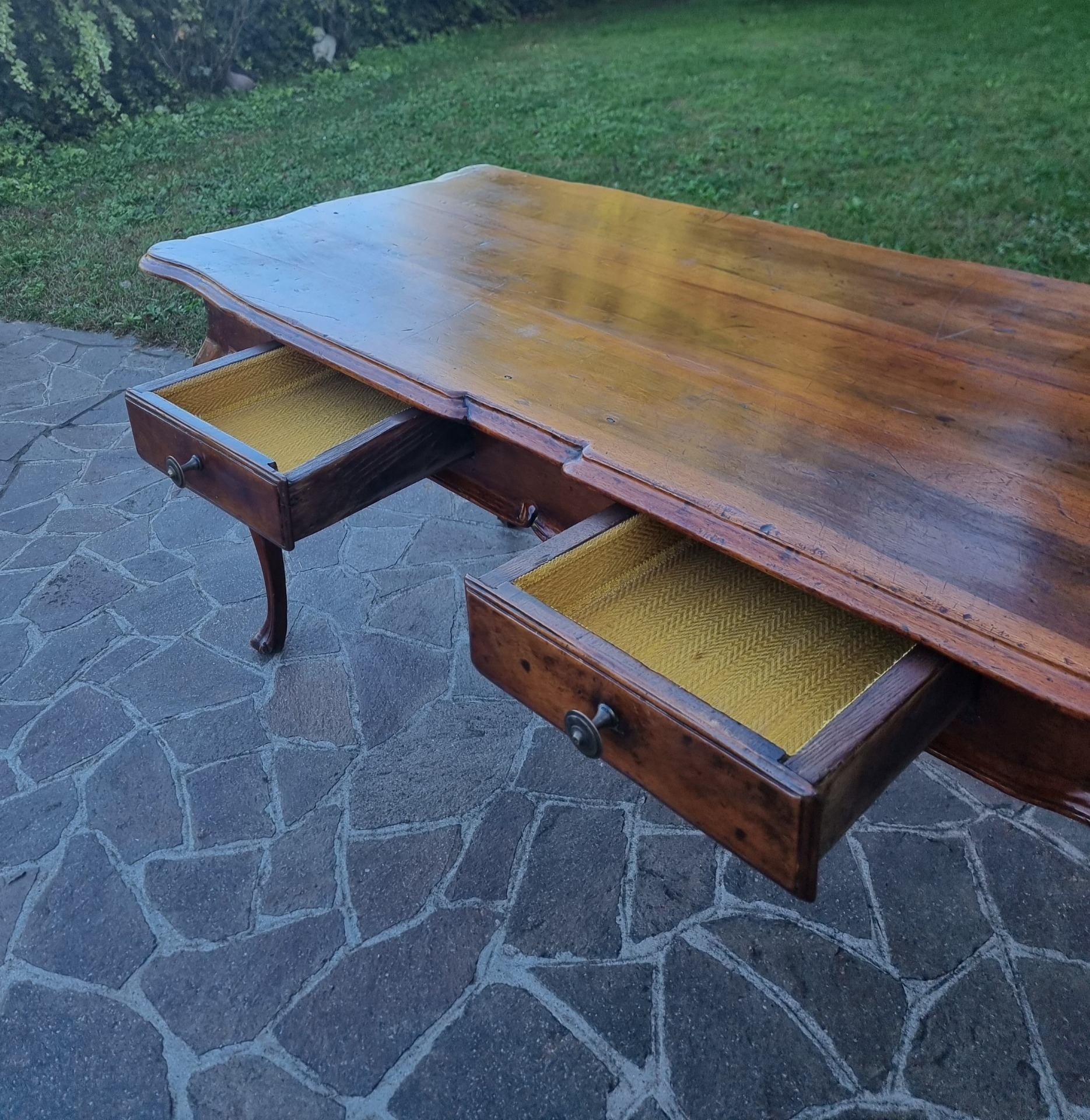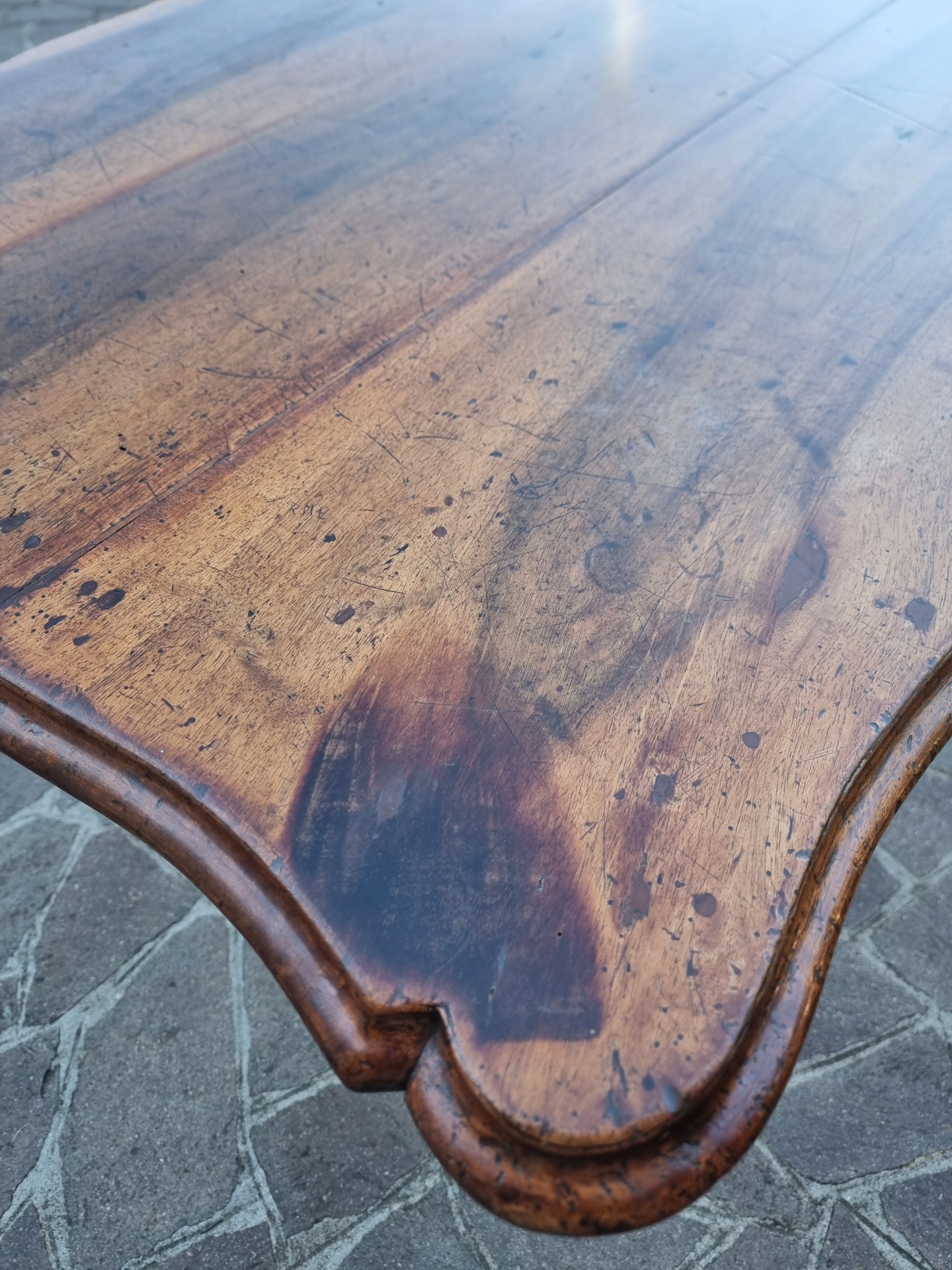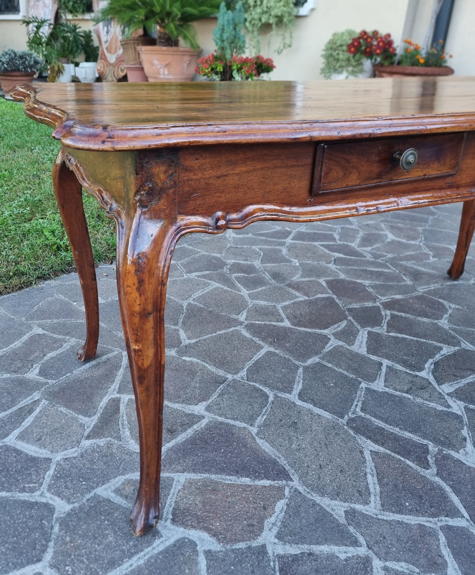 {"traduzioneBreve": "18th century walnut Directoire table from Venice", "traduzioneEstesa": "The charm of the Venetian DirectoireThis prestigious 18th-century walnut Directoire table from Venice is a magnificent example of elegance and formal sobriety. The balance of proportions, the essence of solid walnut and the refined line make it a piece of furniture capable of harmonizing taste, quality and functionality. In excellent general condition, it has a splendid patina and measures 180x80xh81 cm