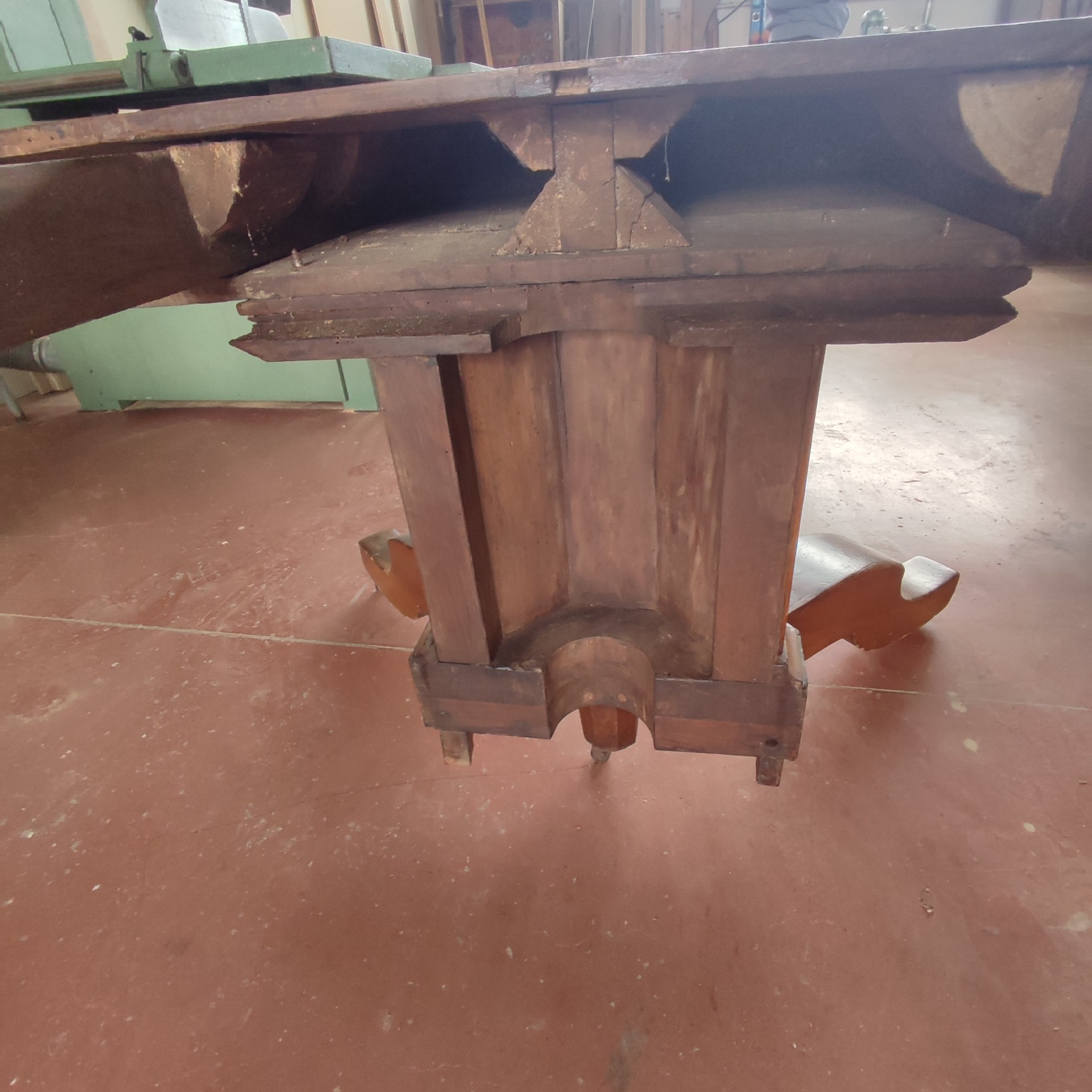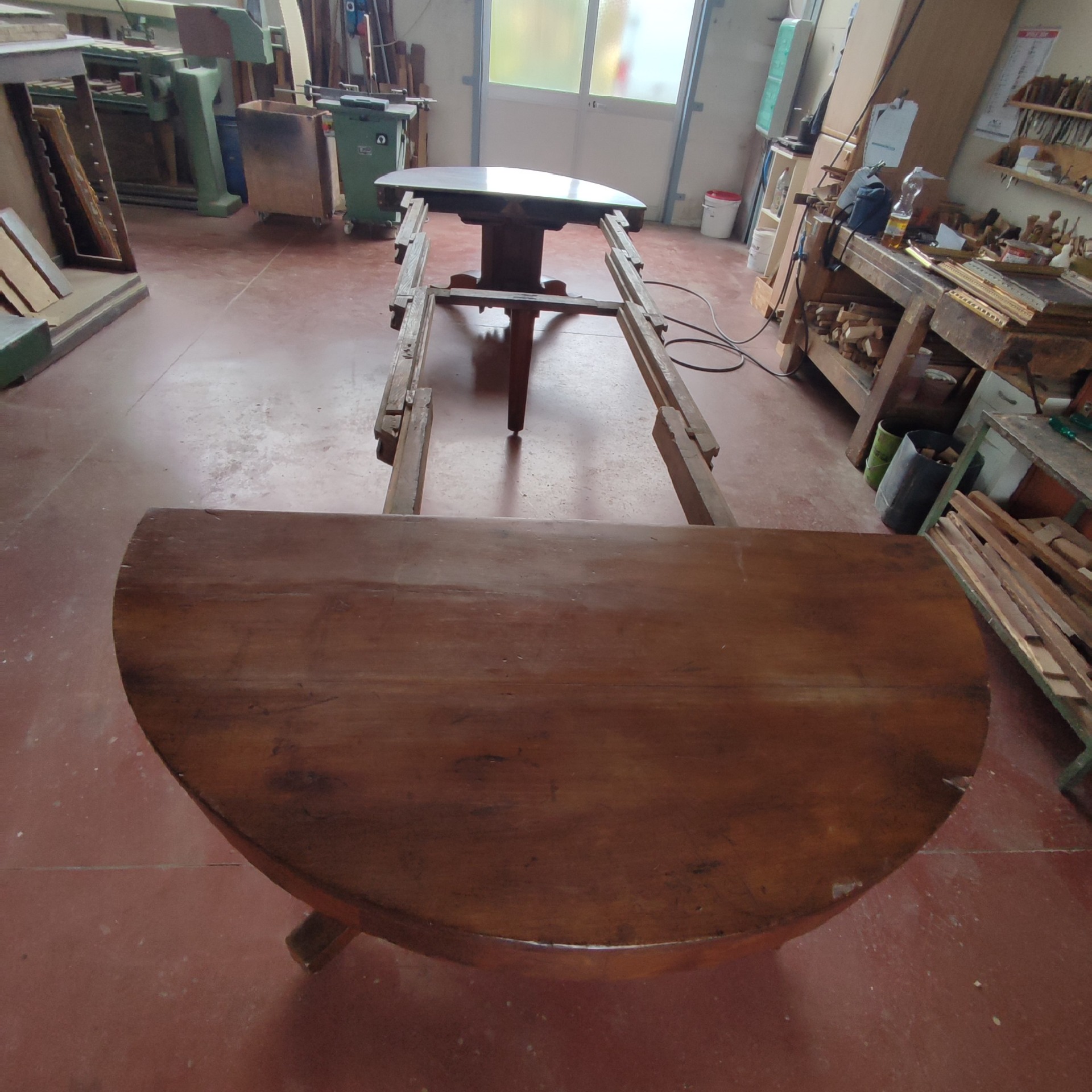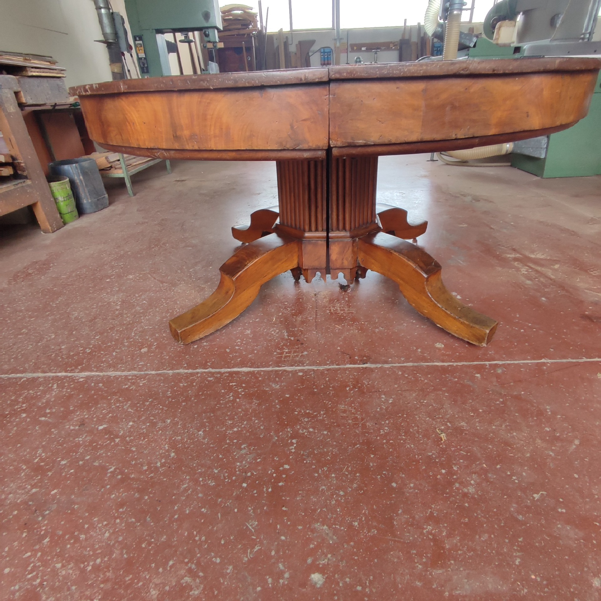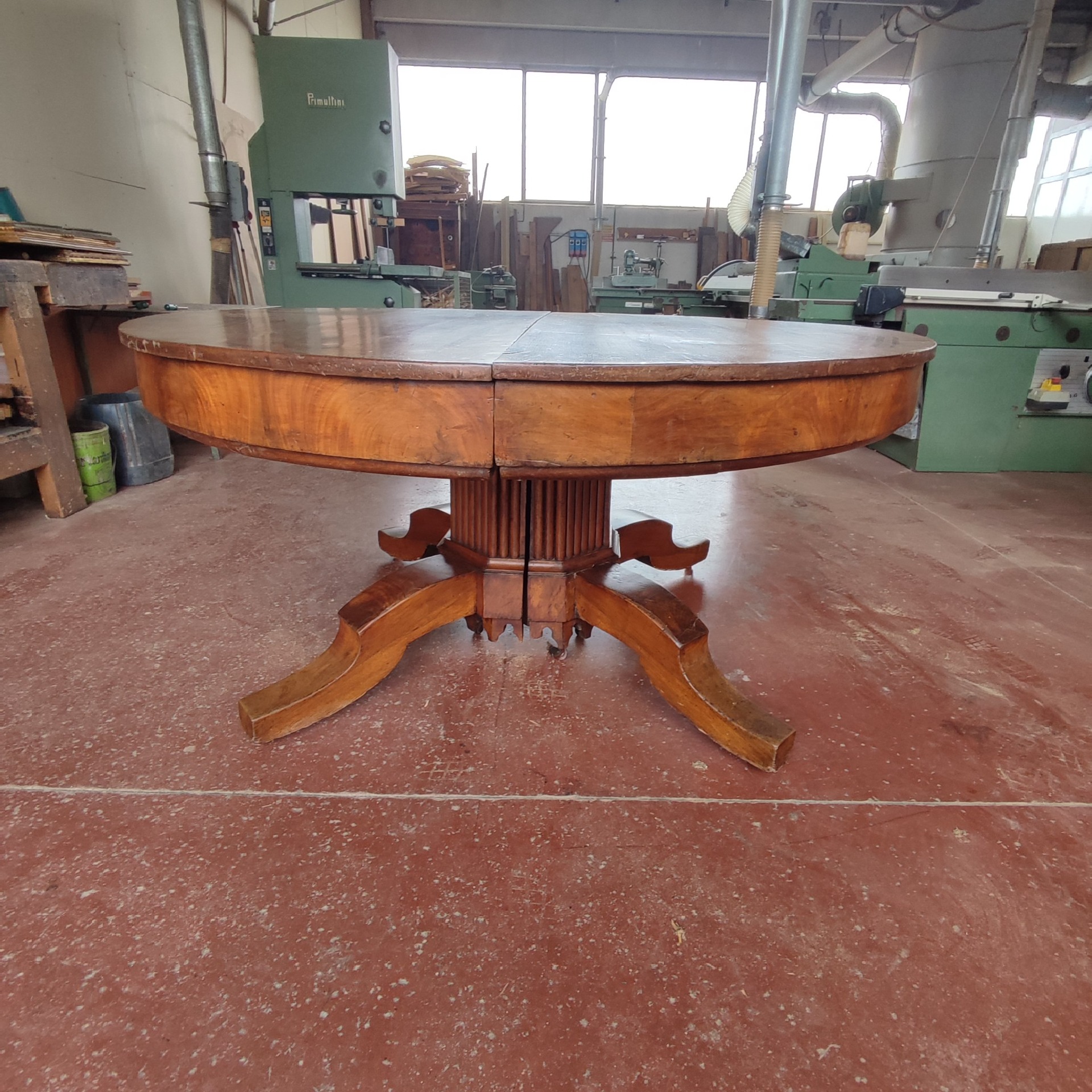 Large round extendable walnut table with support leg. Early 1800s period.Measurements: