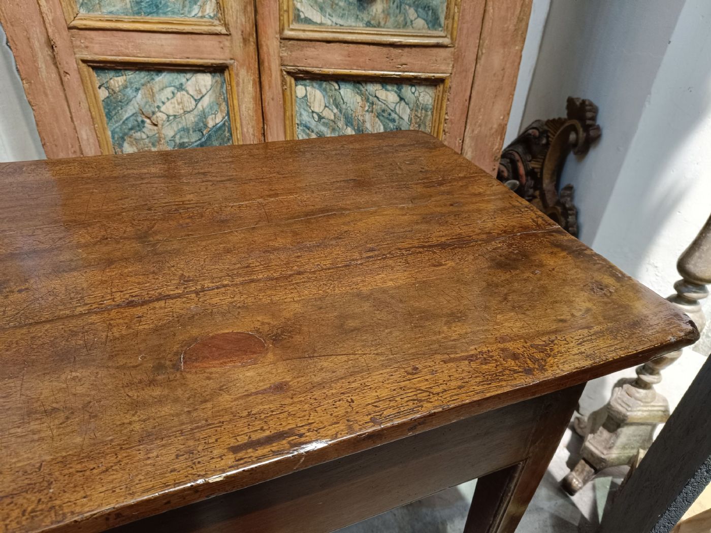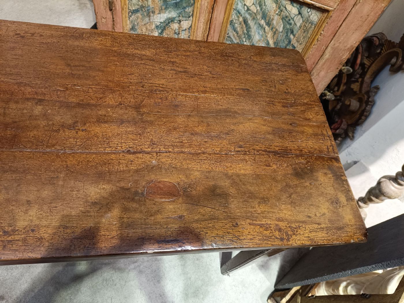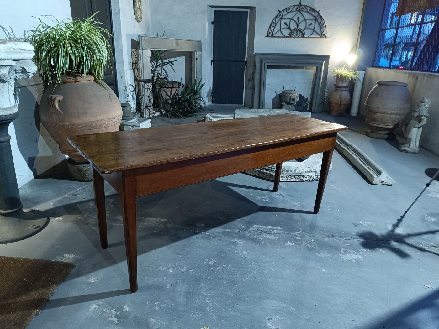 Unique Tuscan monastic refectory table, in walnut wood, with fluting at the 4 corners of the leg and along the crosspieces.
