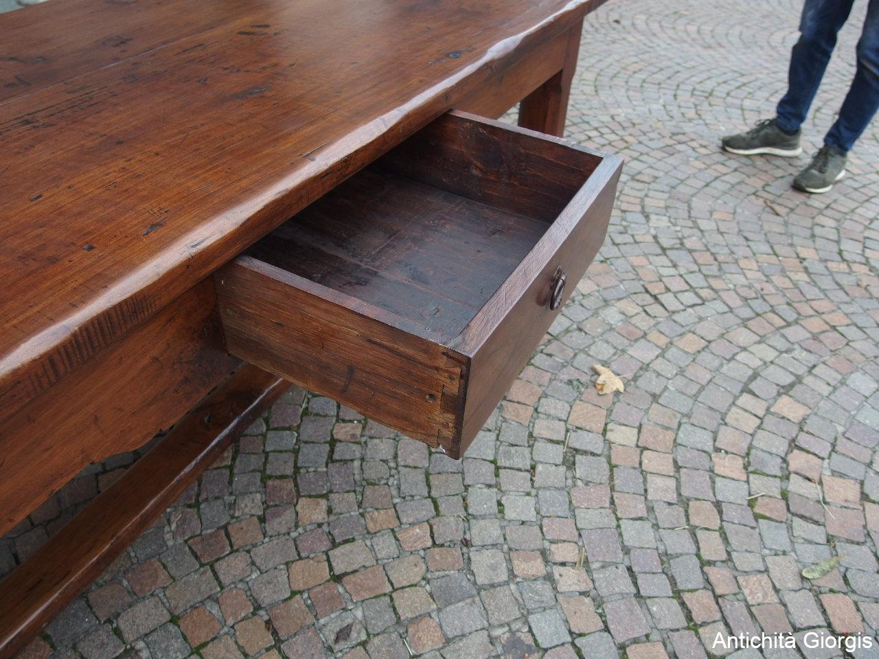 Beautiful rustic rectangular walnut table with a central drawer, dating back to the late 18th century and originating from France.The table DOES NOT REQUIRE RESTORATION (see photos). The finishing has been done with wax.