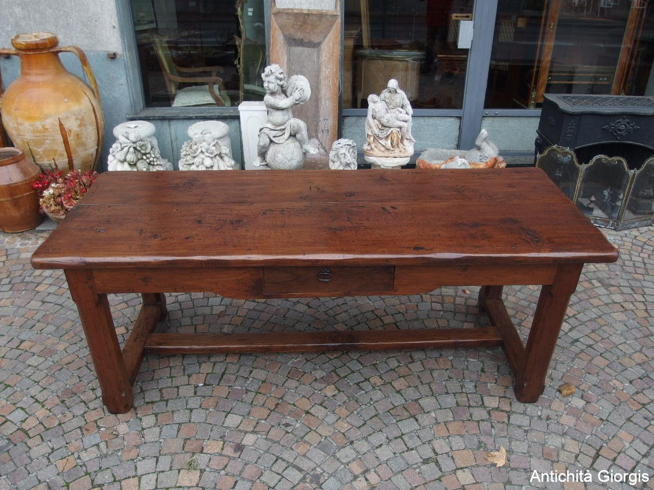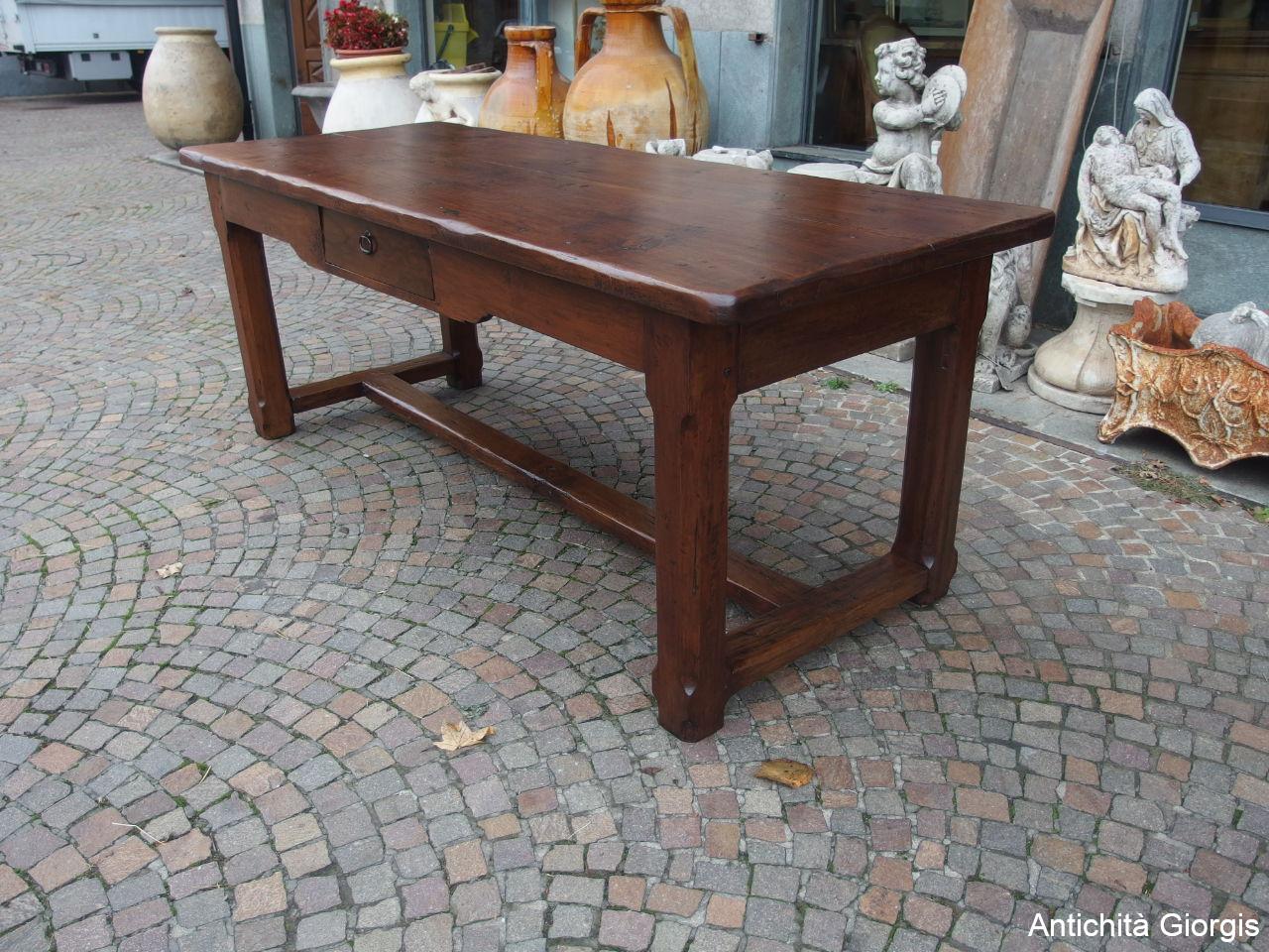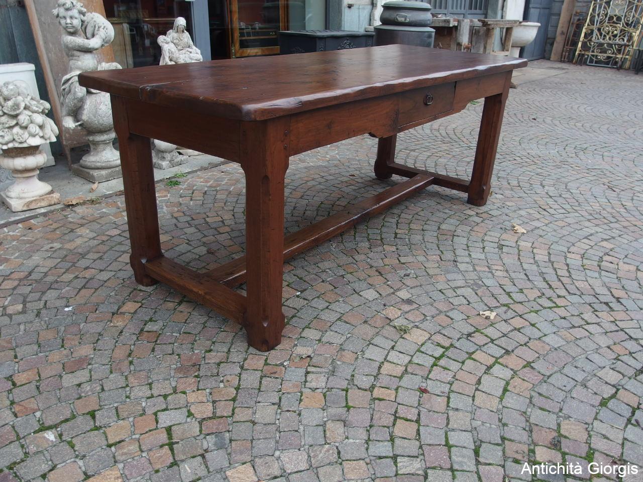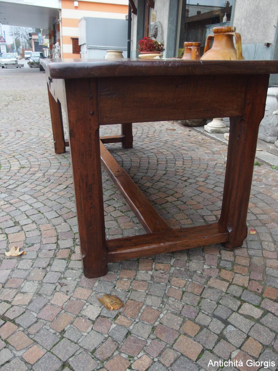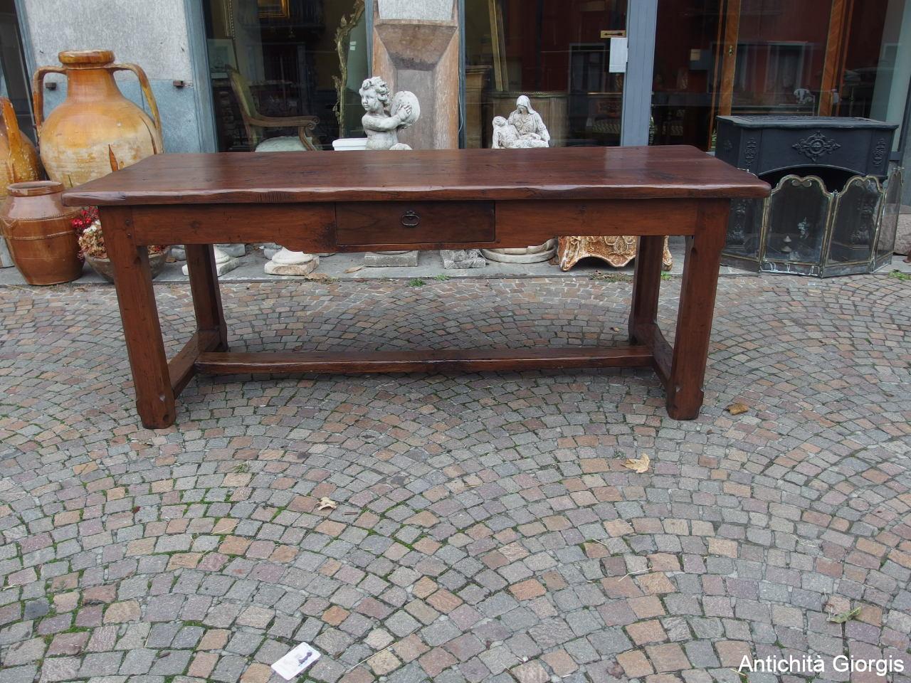 RECTANGULAR WALNUT TABLE WITH DRAWER, LATE 18TH CENTURY, RESTORED cm L200xW77xH78